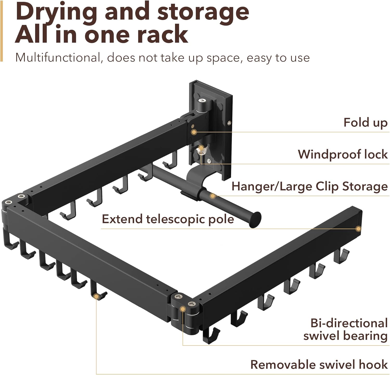• ****【Can be folded left and right and up】****This wall-mounted drying rack can help you save space more effectively with its three-fold design. Not only can it be folded horizontally against the wall, but it can also be folded vertically upwards. This feature is particularly useful when you have limited horizontal space and need to utilize the vertical space for drying clothes. This drying rack's ability to hang clothes in different directions showcases its advantage over traditional hangers.