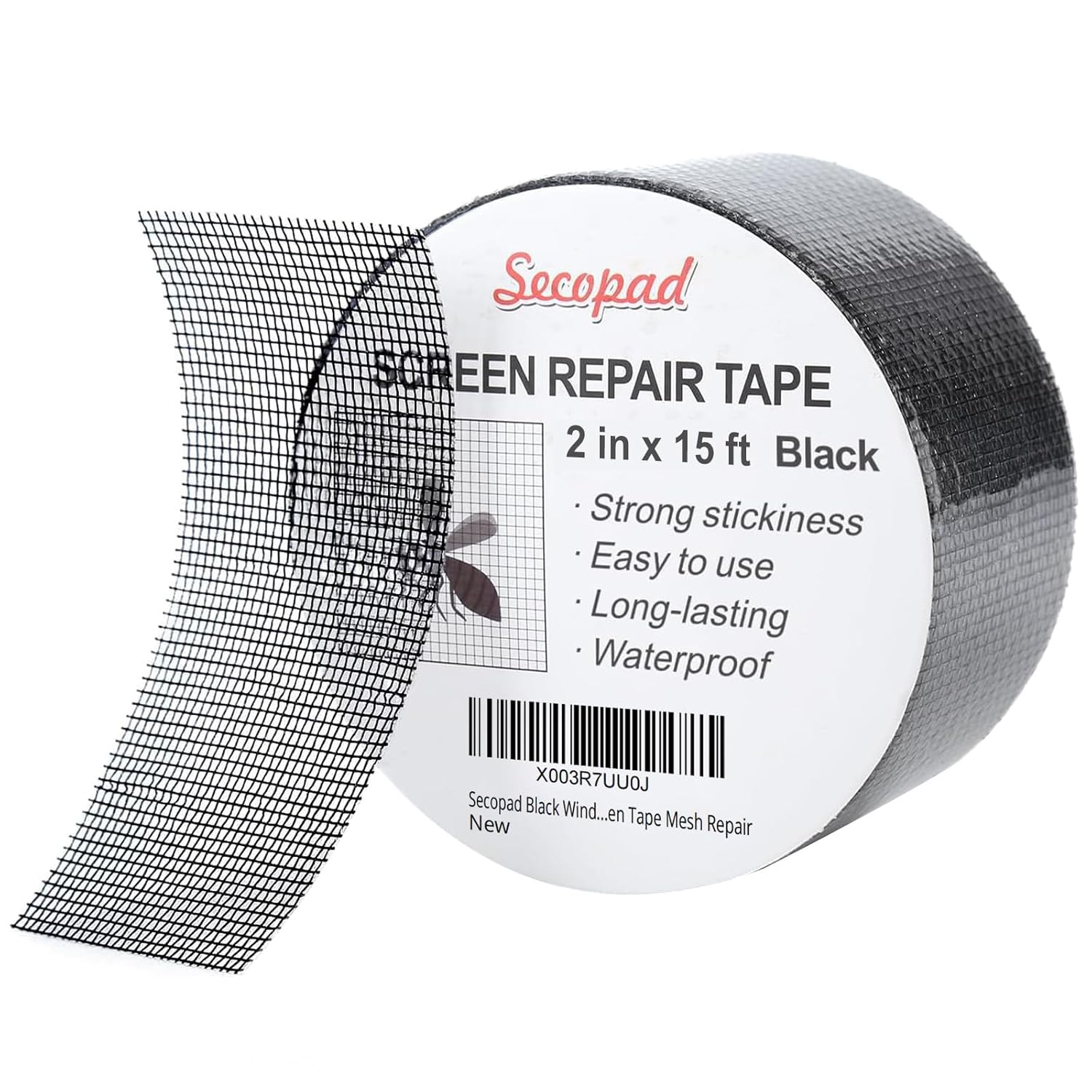 Black Window Screen Repair Tape, 2 in X 15 FT (180IN) Screen Repair Kit for Windows or Doors, Strong Adhesive Screen Patch Fiberglass Screen Tape Mesh Repair