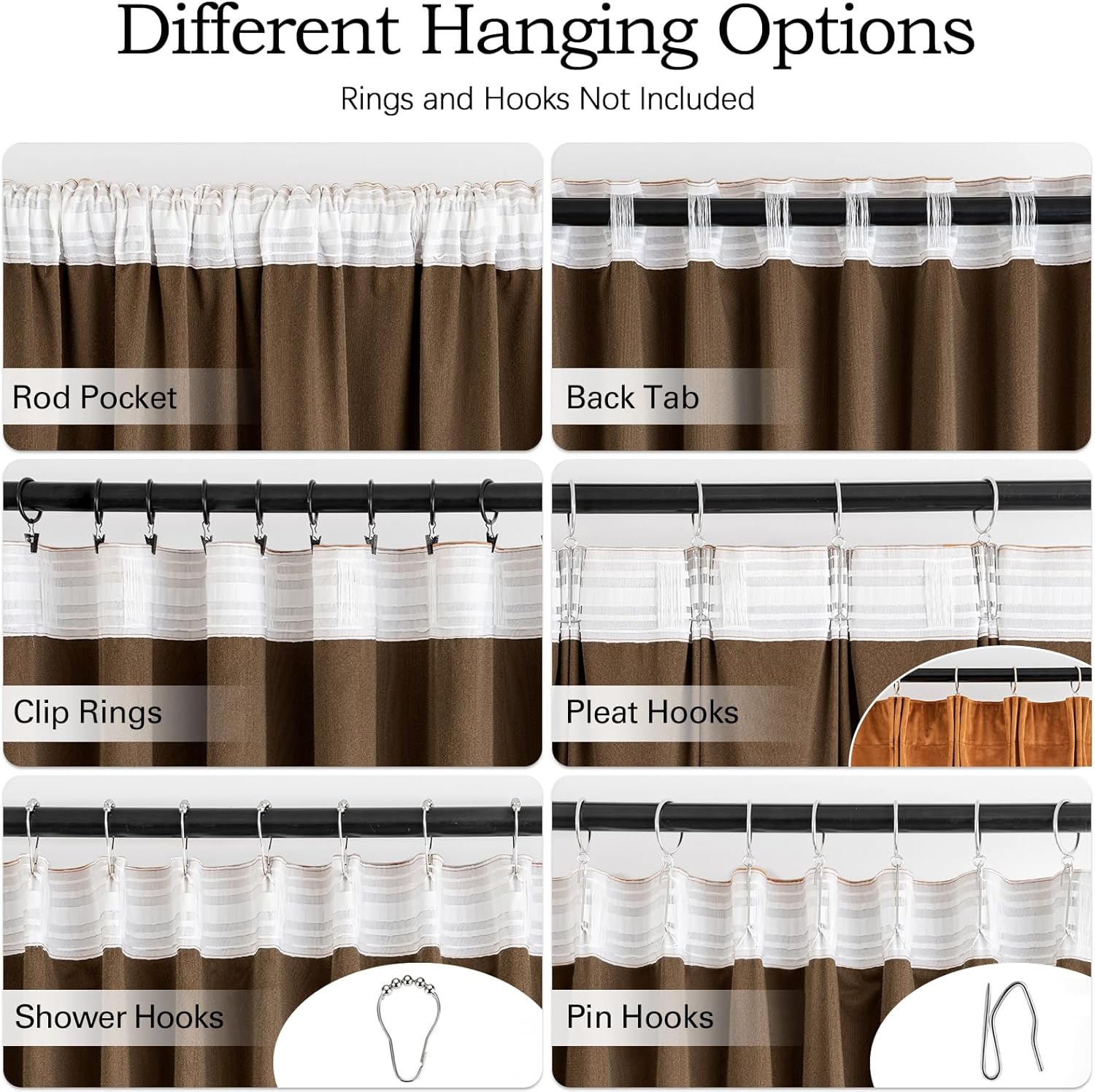 • HANGING OPTIONS: Each curtain panel has 3-in-1 top style design: rod pocket, back tab and pinch pleat. Back loop (2.3 inch) and rod pocket (3.1 inch) fit most standard rod. Curtains also can be hung with clip rings or curtain hooks. 3 ways to meet your various needs.