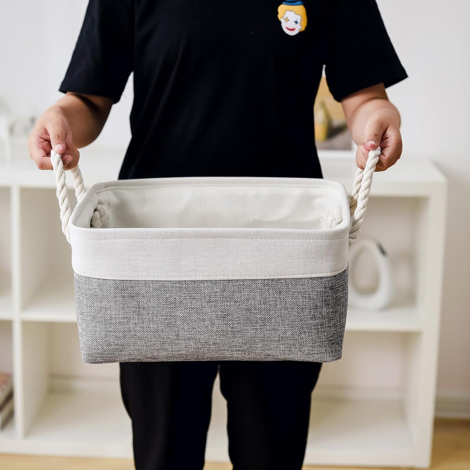 • HANDMADE STICHED & STURDY - TheWarmHome closet organizer outside fabric is made of more linen & thicken Environmental EVA, and used a lining material for the inside, Semi handmade stitched. Sturdy metal rod frame around the top keep the basket shape. Strong seams and rope side handles, make this storage baskets are sturdy and easy to grab. Stand up great on their own even unfilled and ensure a greater product lifespan.