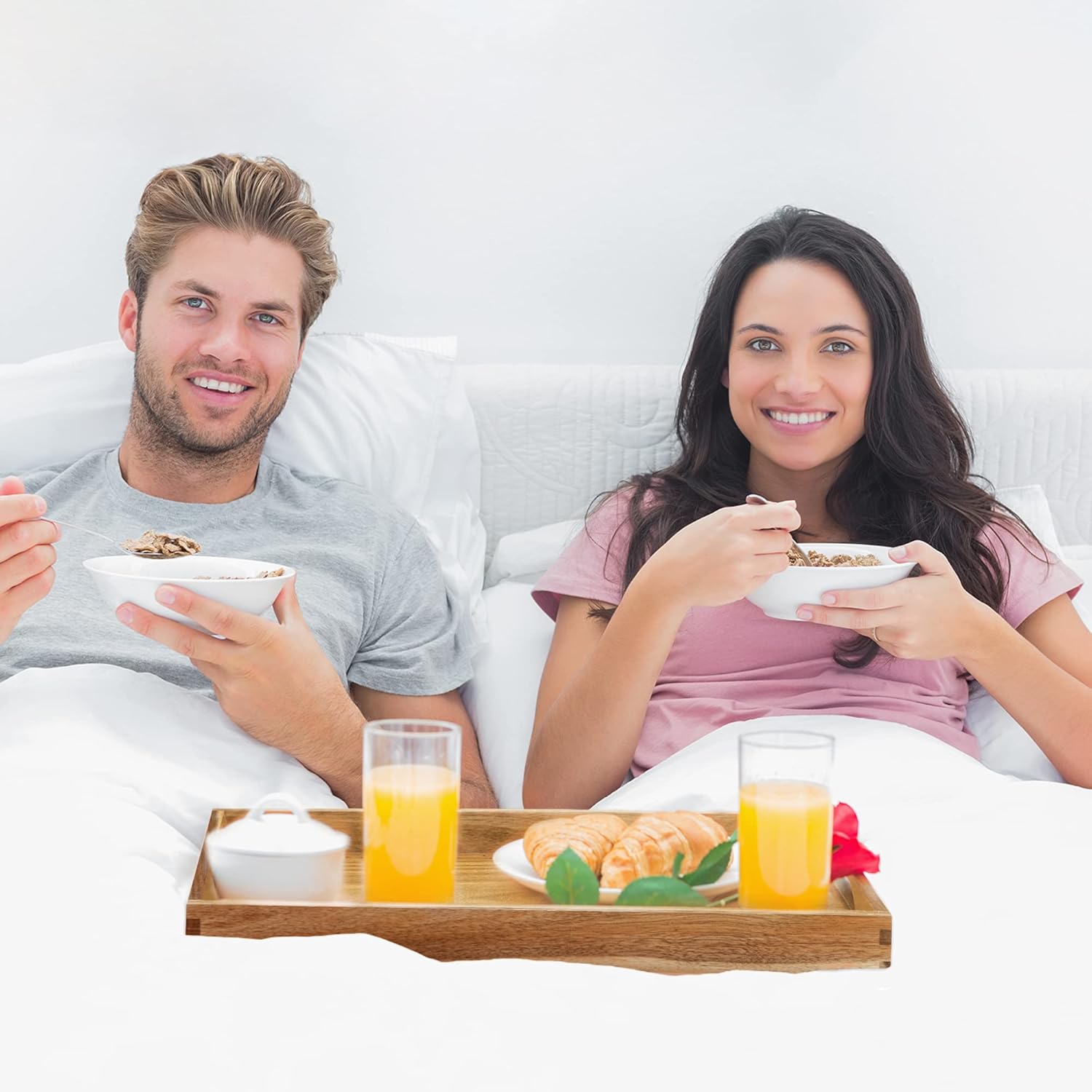 • MULTIFUCTIONAL LARGE WOOD TRAY: This decorative large serving tray is perfect for serving breakfast, lunch, dinner snacks appetizers, or any meal on your bed, dining table, coffee table, or anywhere you want! Ideal for kitchen, commercial use, family events, parties, offices, and more!