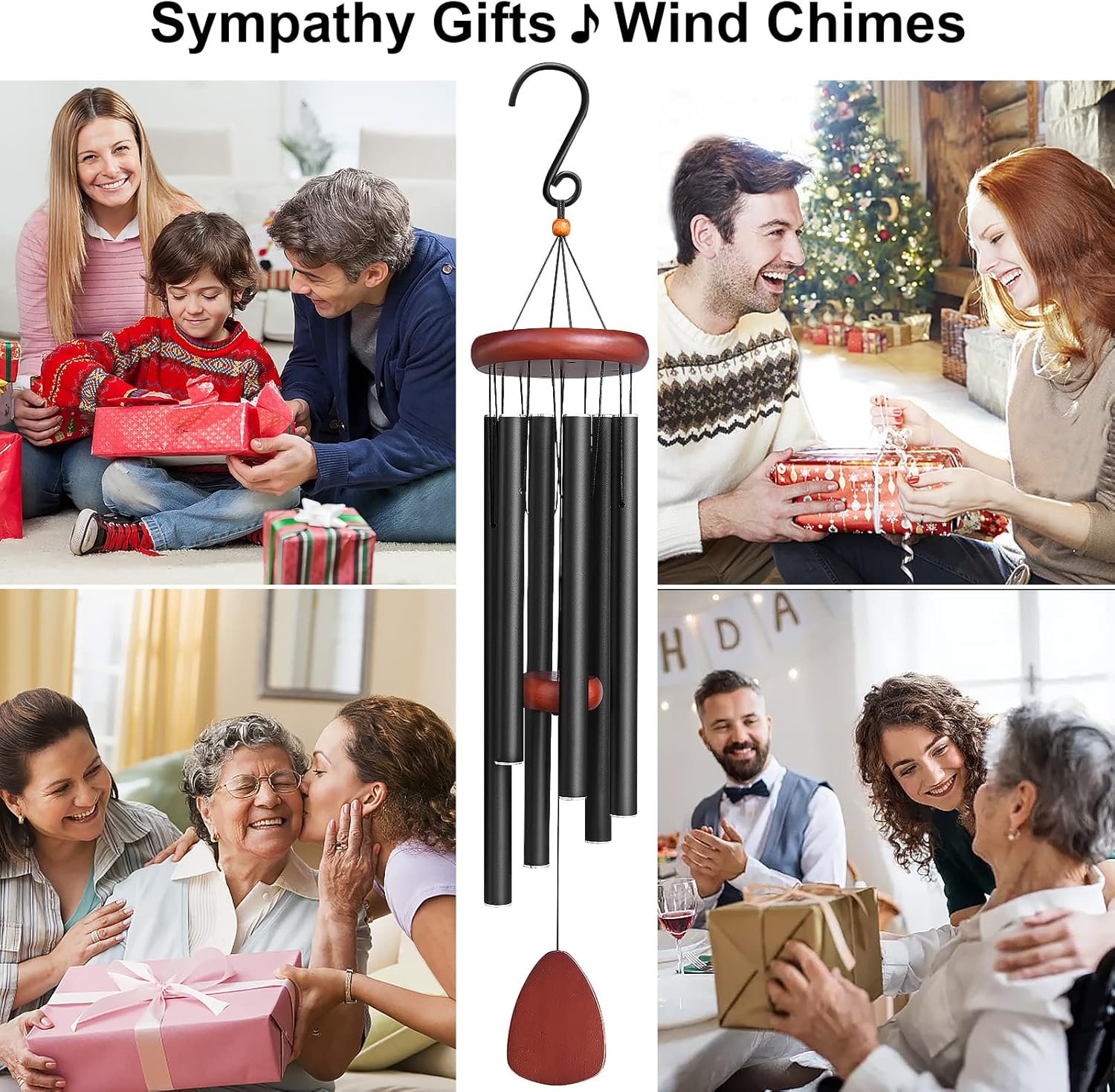 Large Aluminium Wind Chimes Outside, Soothing Melodic Memorial Sympathy Wind Chime, Suitable Outdoor Garden Decor, Gift for Mom Women Neighbors (Black Wind Chimes-36 in)
