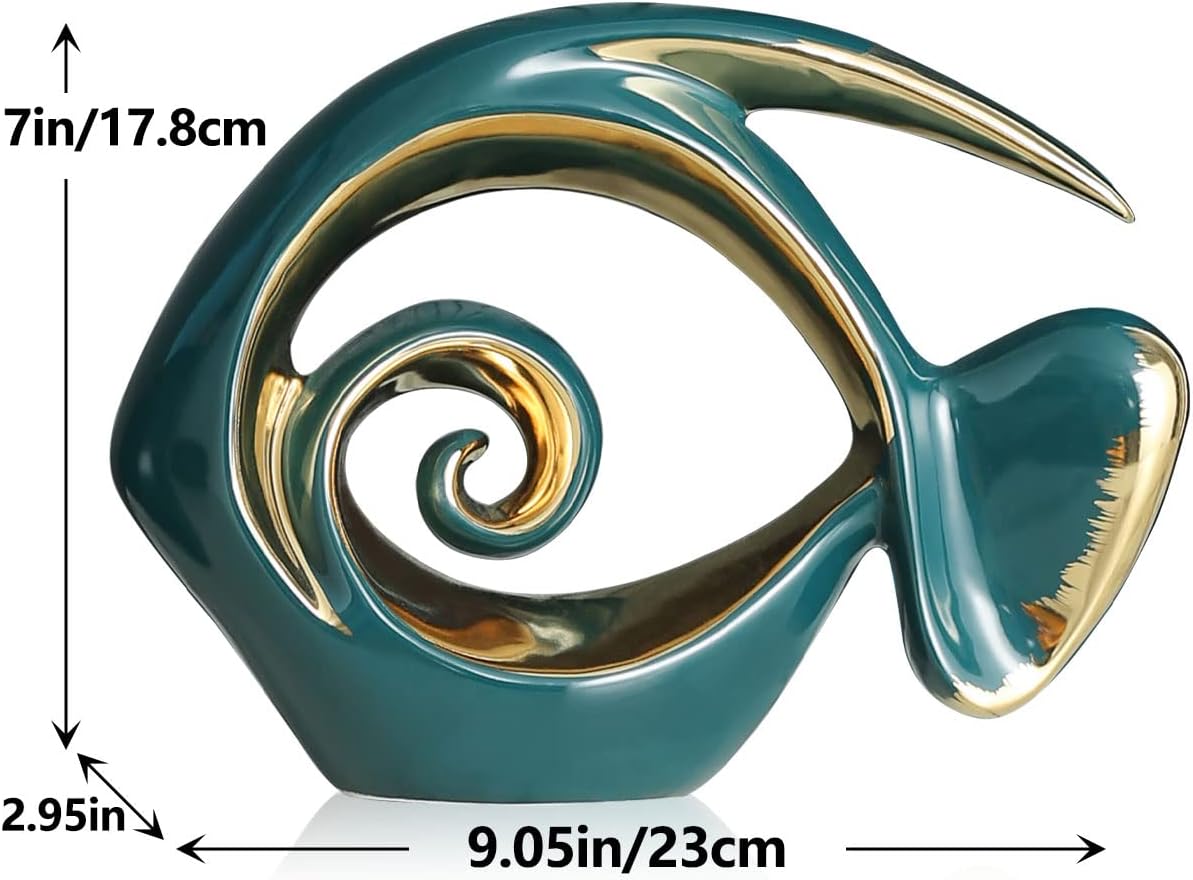 • High-Quality Ceramic Construction: Made with premium ceramic materials and expert craftsmanship, this green gold ceramic fish sculpture features an elegant lustrous finish, a smooth texture, and is easy to clean and maintain.