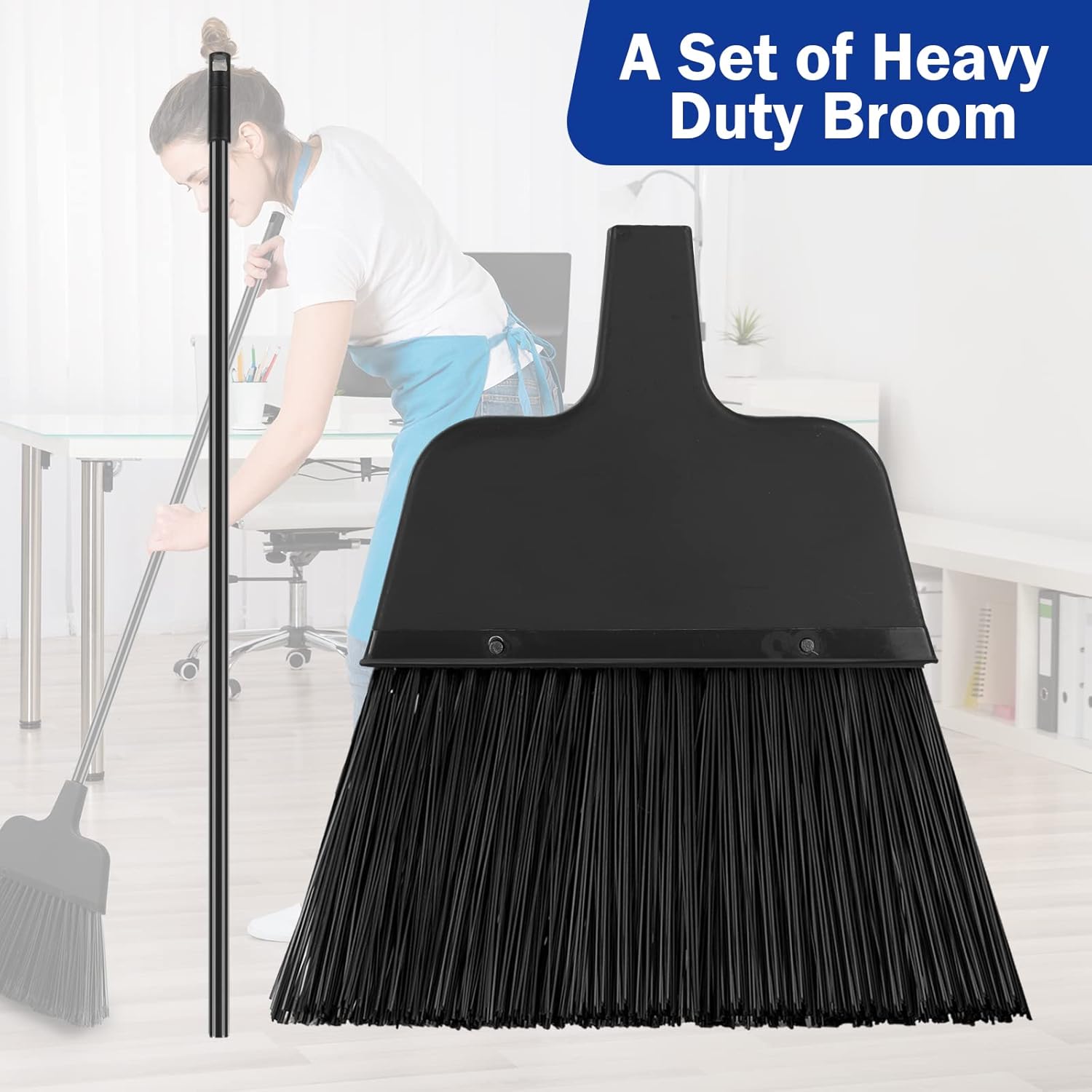• Long Handle: this commercial broom measures approx. 54 inches in whole length, and the handle is about 47 inches long so that you won't bend your back and the long broomstick will also allow you to reach the corner and spot to keep your space spotless