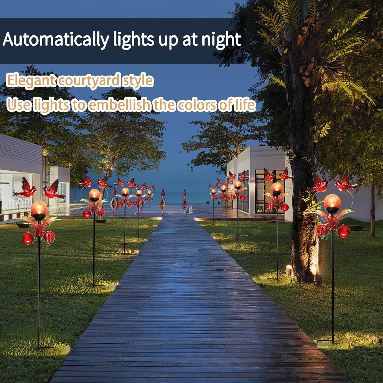 • Easy to Install - Simple assembly structure without extra screws, wiring or external electricity required. Just stick the cardinal garden stake into the soil, turn it on using the solar panel's power button, then enjoy your garden ornament as it softly glows automatically from dusk.