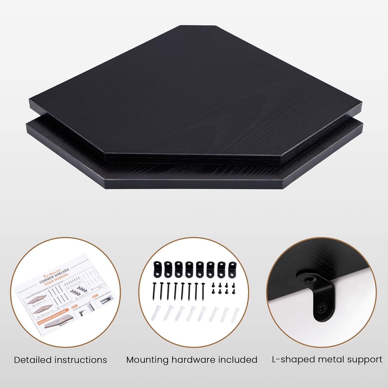 • 【Easy to Mount】The package comes with user-friendly instructions and all the necessary mounting hardware. Just place the corner wall shelf level in your desired location and secure it in place using the hidden bracket connectors provided, followed by screws