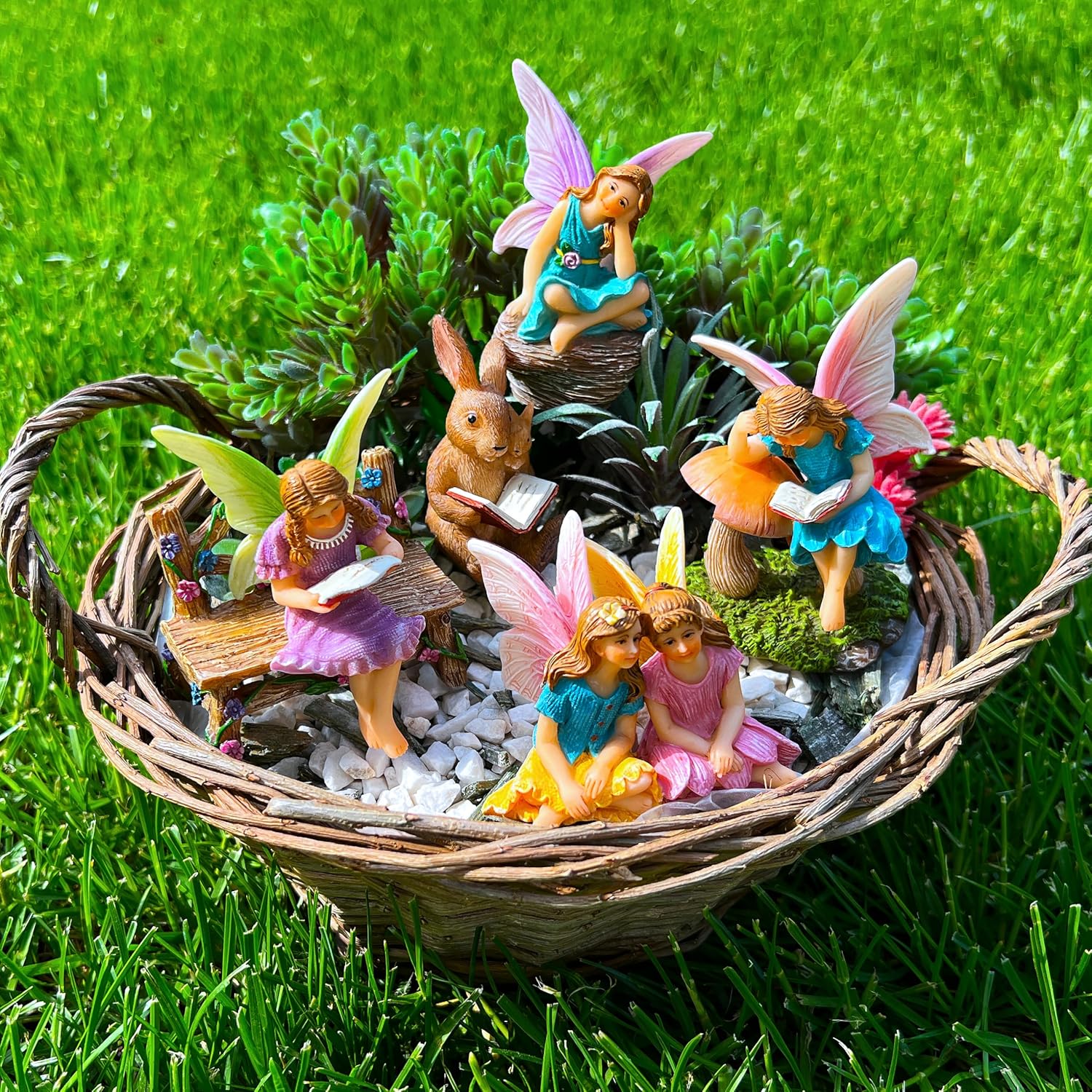 Mood Lab Fairy Garden - Miniature Reading Fairies Figurines Set - Statues & Accessories Decor Kit of 6 pcs