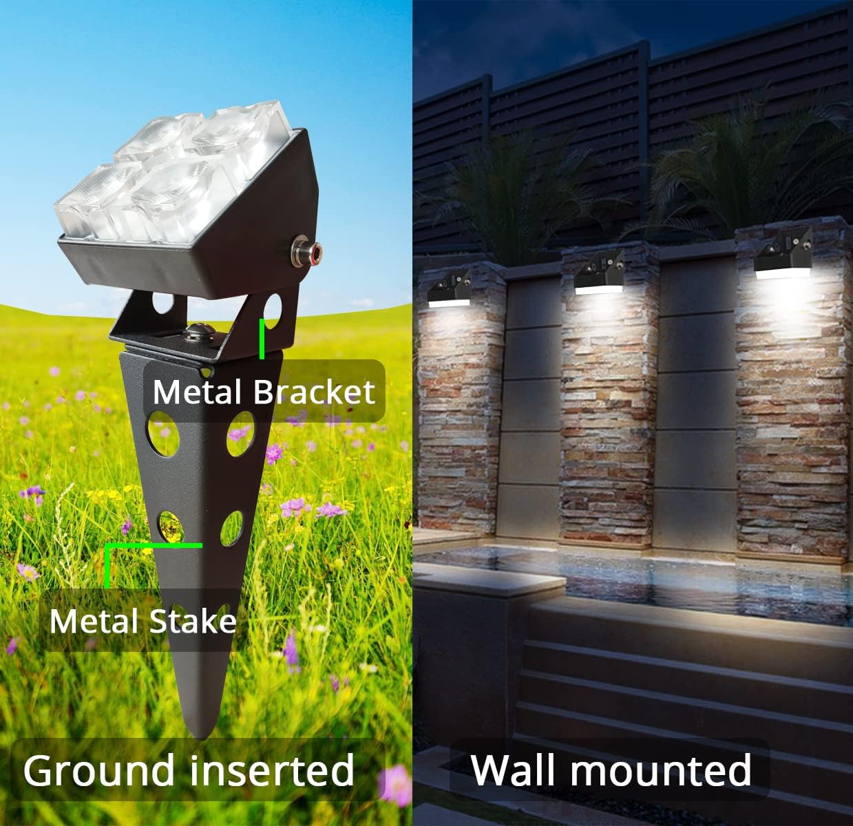 • 【IP65 Waterproof & Easy Installation】The Solar Outdoor Light head is sealed by silicon glue, completely waterproof for outdoor use, stick into the ground with the metal stake as landscape lights, or mount on the wall with the screws as wall lights, optimum for Patio, Porch, Path, Deck, swimming, pool, Yard, Garden, Garage, Driveway, Pathway, etc landscape lighting.