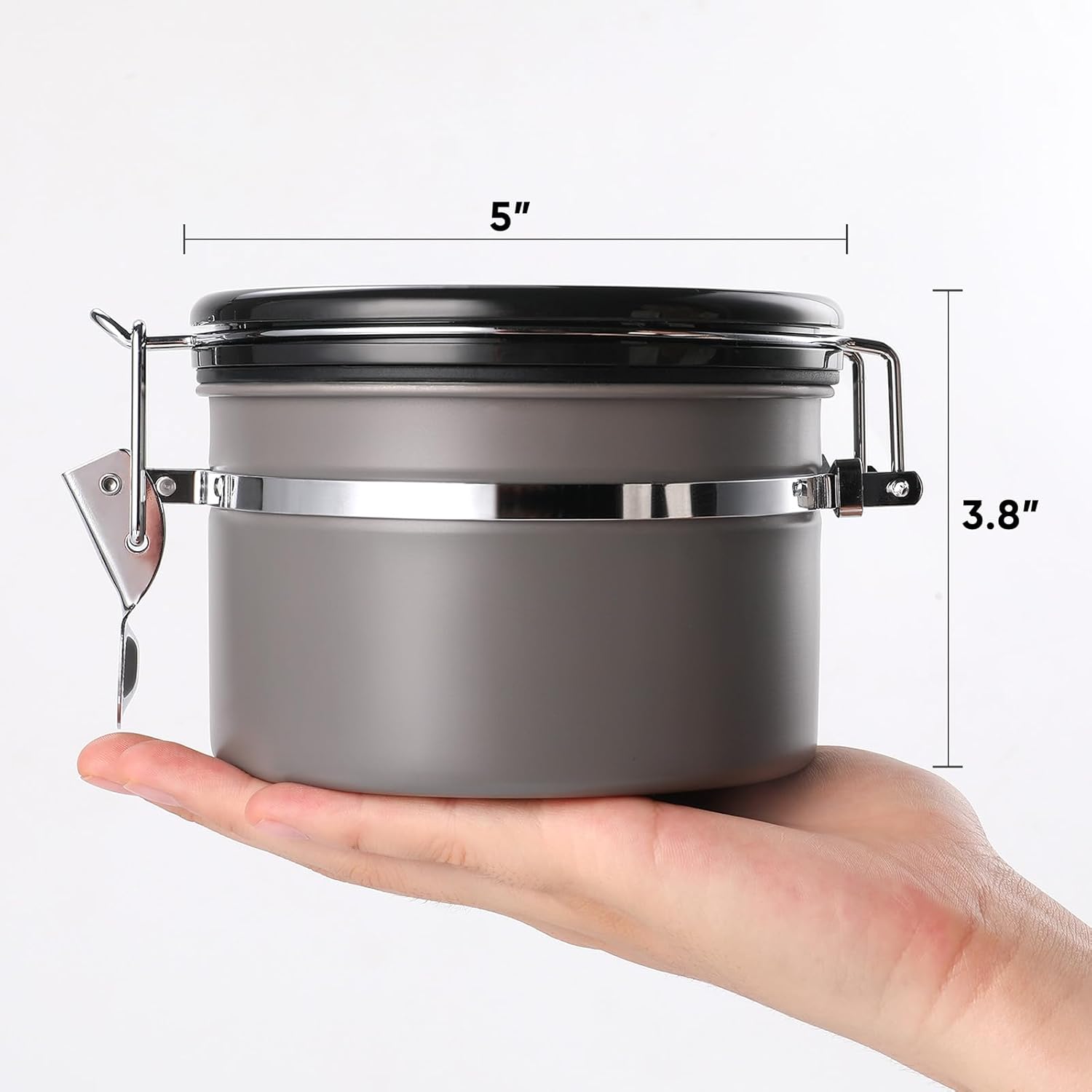 • LONG-LASTING FRESHNESS: Sealed vacuum coffee Canister 22 Ounces is made of high-quality food grade stainless steel 304 with a strong stainless steel buckle.It keeps quality coffee beans or ground coffee fresh for a long time, allowing you to enjoy every bite of coffee you like best.