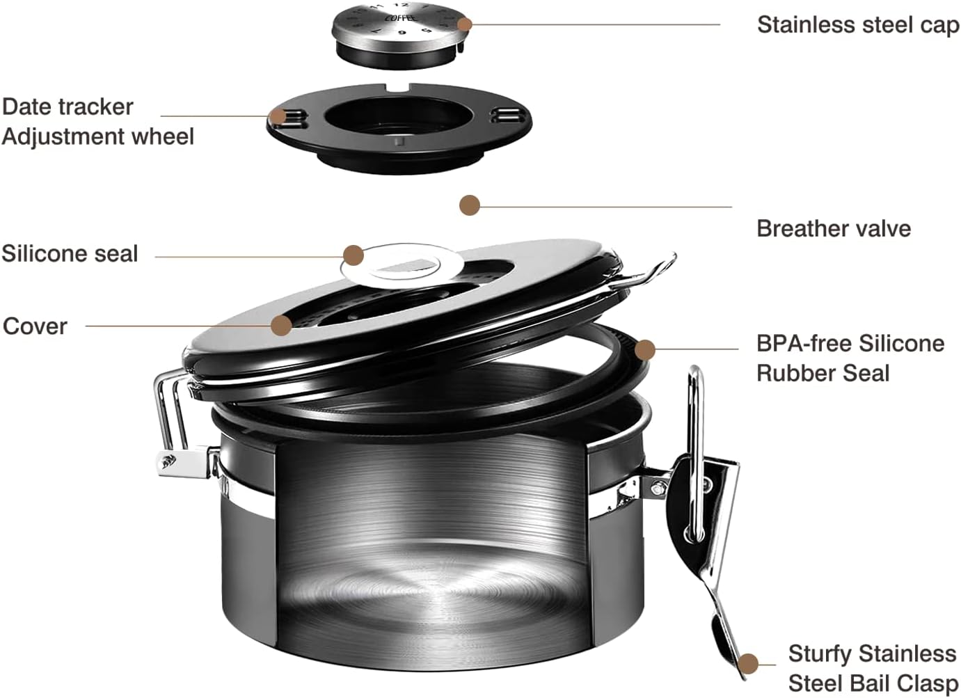 • DATE TRACKER: Use the date tracker on the lid of the coffee can to set the storage or expiration date.This will help you track the freshness of your coffee to prevent expiration and waste and enjoy fresh coffee at the right time
