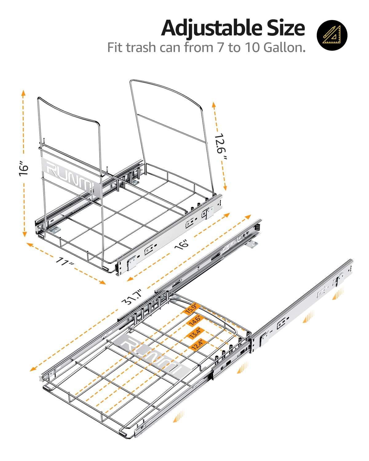 • 【Wide range of use scenarios】 The cabinet garbage can pull-outs are great for storage and can be used in sinks, pantries, bathrooms, laundry rooms, pet rooms, tool rooms, RV,and many other places.