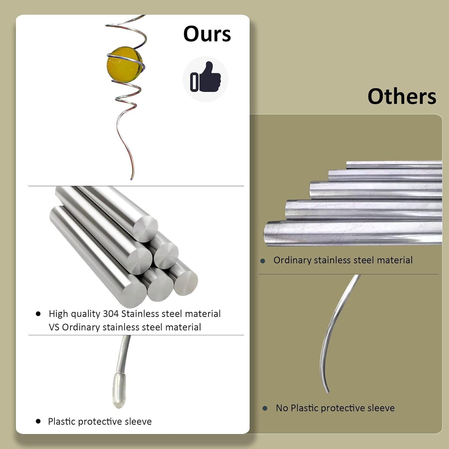 • 【High Quality】11inch height spiral tail made of #304 stainless steel wire,the 2inch colored ball made of pure solid color glass material,have good weather resistant,no fading under sunshine.Better quality than iron material with nickle plating and painting color glass ball in the market.