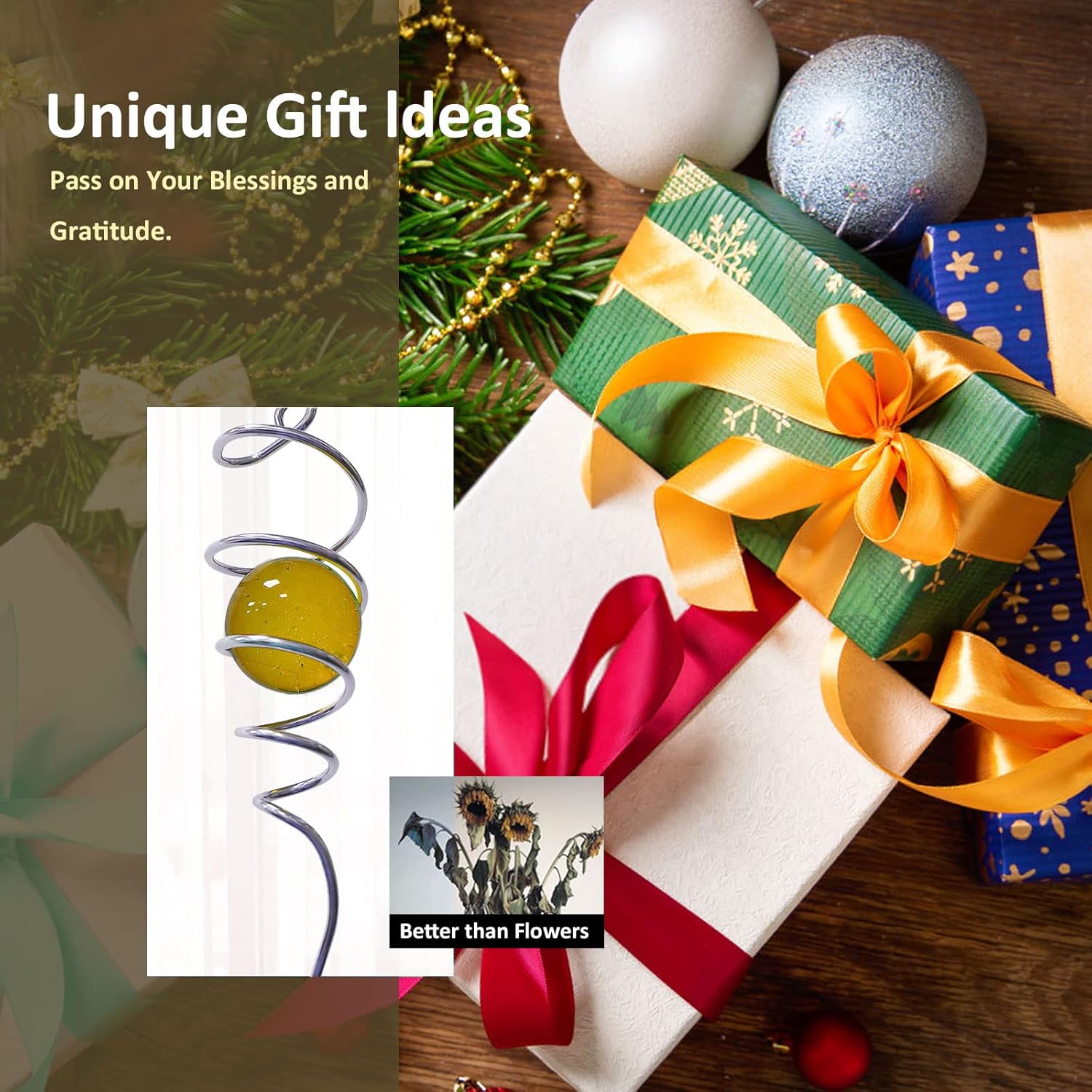 • 【Unique Spiral Design】The gazing ball spiral tail is an unique hanging ornament ,Also it can help to stabilize 3D wind spinners or yard decor from swing when it rotate.When the spiral tail rotates to the left, the glass ball seems to move upwards,when the spiral tail rotates to the right, the glass ball seems to moves downward,the glass ball seems to like floating and dancing in air, presenting a magical optical illusion!