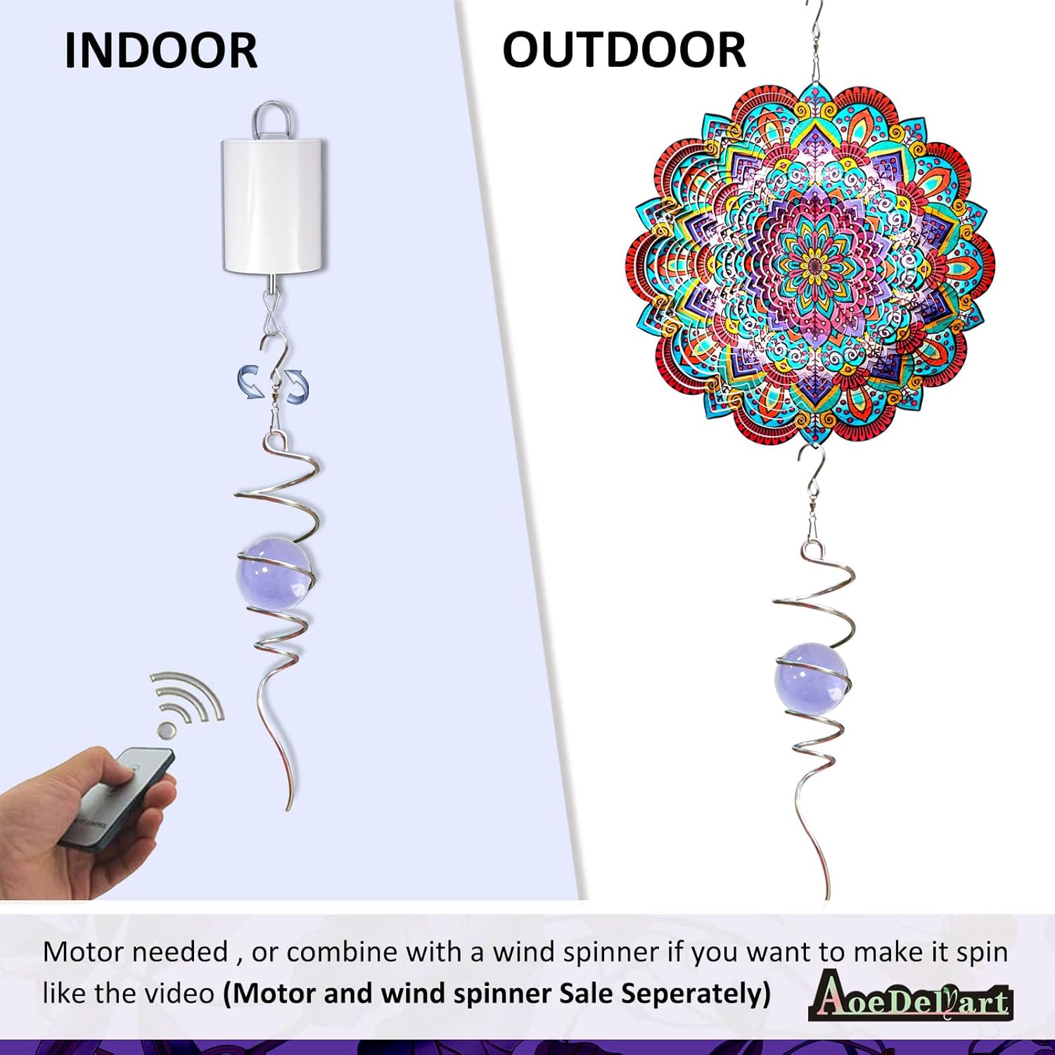 • 【Easy To Position】The Spiral can't spin by itself ,if you want to make it spin like the video ,need add 1pc motor (not include) ,or combine it with a wind spinner or any rotatable hanging ornament to help it rotate. Come with 1pc 2 inch colored glass orb(not paint), 1pc silver color spiral tail twister,and 1pc swivel hook accessory, ready to hang and enjoy.