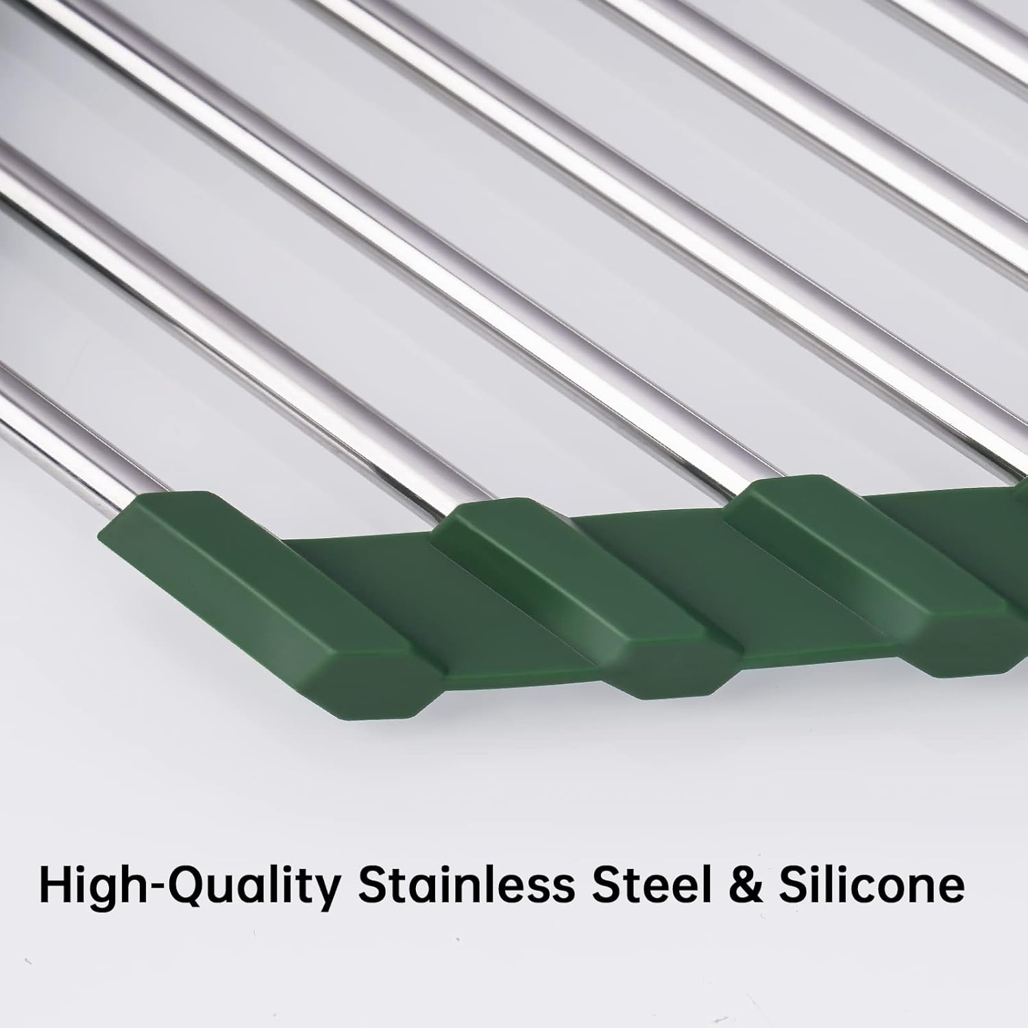 • ✔️【Food Grade Materials】Made of premium quality SUS304 stainless steel and BPA-free food safe silicone edges, this drying rack is waterproof, rust-proof, durable and scratch-resistant. Solid construction with non-slip silicone ends securely attached to stainless steel rods.
