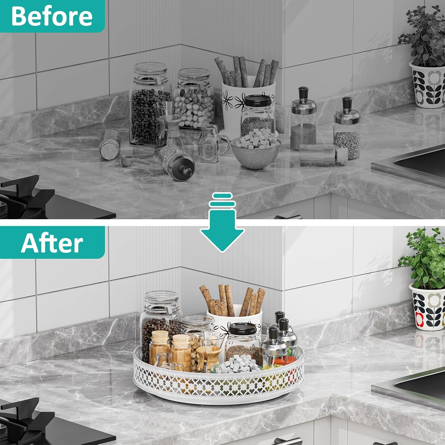Ovicar Lazy Susan Turntable Organizer - 13 inch Rotating Spice Rack Metal Lazy Susan for Cabinet Pantry Kitchen Countertop Dining Table Cupboard Bathroom Vanity Refrigerator White
