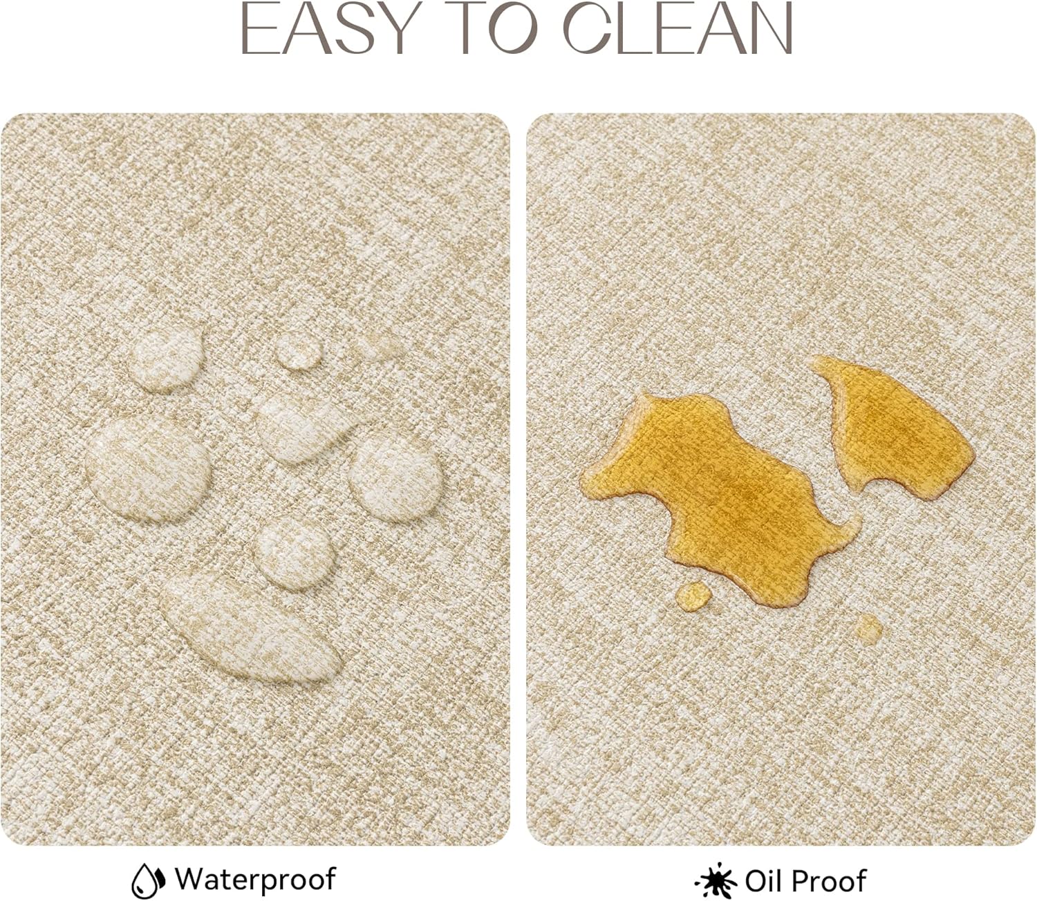 Romanstile Vinyl Placemats Set of 6-12 X 18 Inch - Heat Resistant Place Mats 100% Waterproof Oilproof Wipeable Reversible Faux Leather Table Mats for Kitchen/Dining/Party/Outdoor, Beige