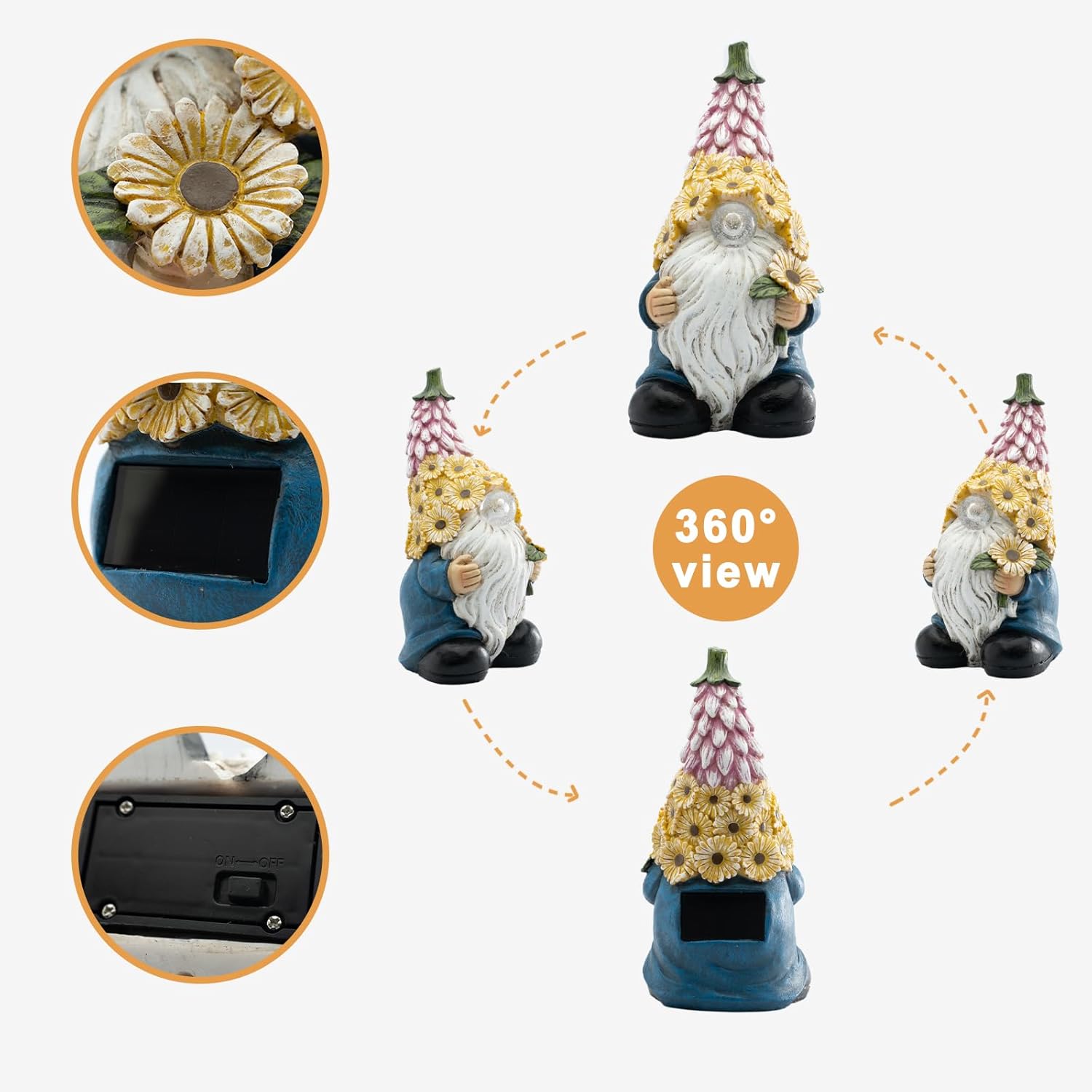 • 🌻【WEATHER-RESISTANT AND DURABLE】Made of high-quality resin, this solar gnome statue is crafted to withstand harsh elements and last for years. Designed with a sturdy base, providing optimal stability for outdoor use.