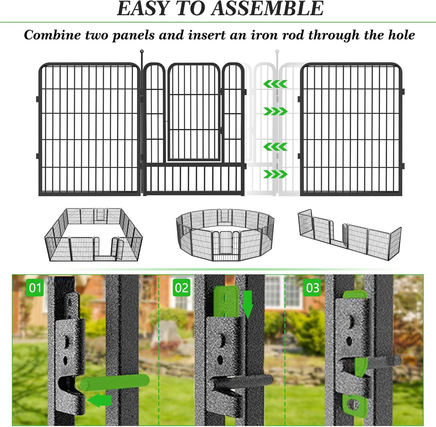 • Rust-proof & Sturdy Construction: Jhsomdr garden fence features double powder coated finish, rustproof, less maintenance, longer use. The metal fence panels are made of heavy duty iron and thick wire, no tearing, chewing, cracking and bending. The fence can work well for long time in bad weather