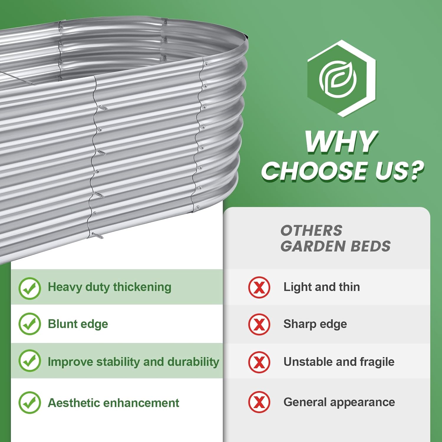 • Upgraded quality and structure: raised garden beds outdoor are made of Q195 galvanized metal sheet, double-layer anti-corrosion galvanizing and oval structure design, which is more beautiful, can withstand greater pressure at the interface, is not easy to loose, and the interface will not Deformed and can be reused for many years.