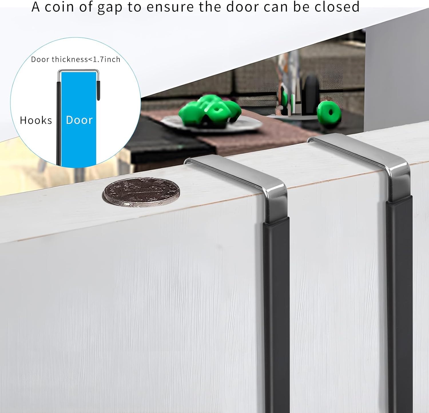 • Wide Application: The over the door hooks can be applied to most door in your house, fit doors of living room, bathroom, shower room, bedroom, kitchen or closets. Prefect for hanging clothes, towels, hats, coats, bags, etc. The hooks convert your doors into a convenient storage space and keep your room organized without messy