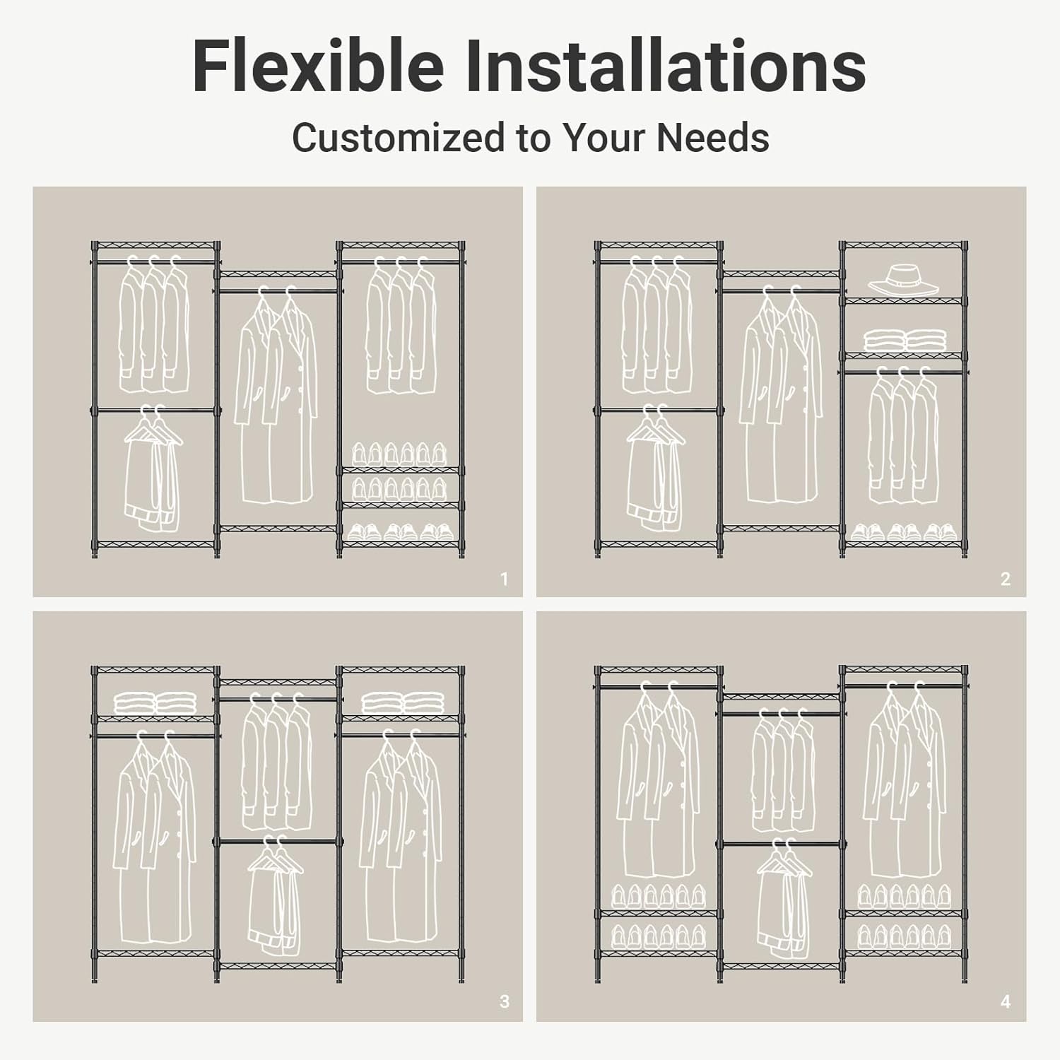 • Multifunction Closet Rack: VIPEK V5C Portable Closet comes with 8 adjustable Shelves & 4 removable hanging rods, it's possible to configure in different ways. Assembly was quick and easy. Raise or lower the shelving to customize the Well-Organized wardrobe closet of your dreams, and MAXIMIZE YOUR SPACE!