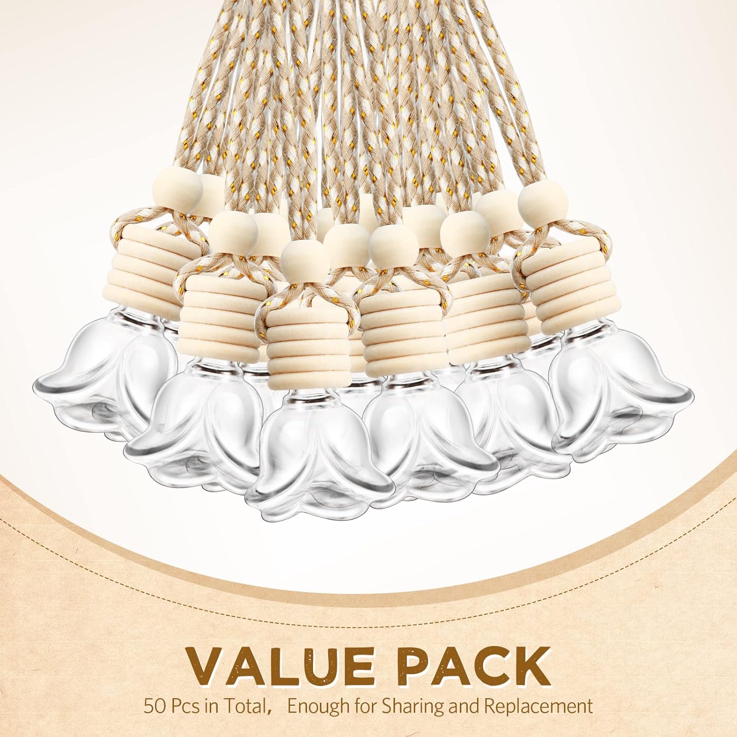 • Enough for Sharing and Replacement: you will receive 50 pieces of perfume bottles for car, each bottle is equipped with a wooden cap, an inner plug and a hanging rope; The sufficient quantity is easy to meet your daily use needs