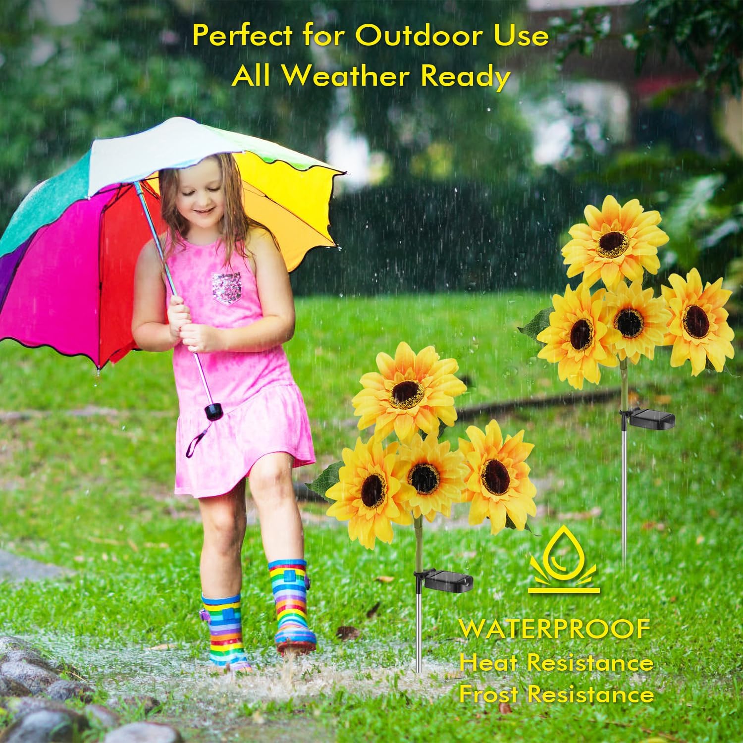 Outdoor Solar Garden Stake Lights,Upgraded LED Solar Powered Light with 3 Sunflower, Waterproof Solar Decorative Lights for Garden, Patio, Backyard (2 Pack 8 Flower)