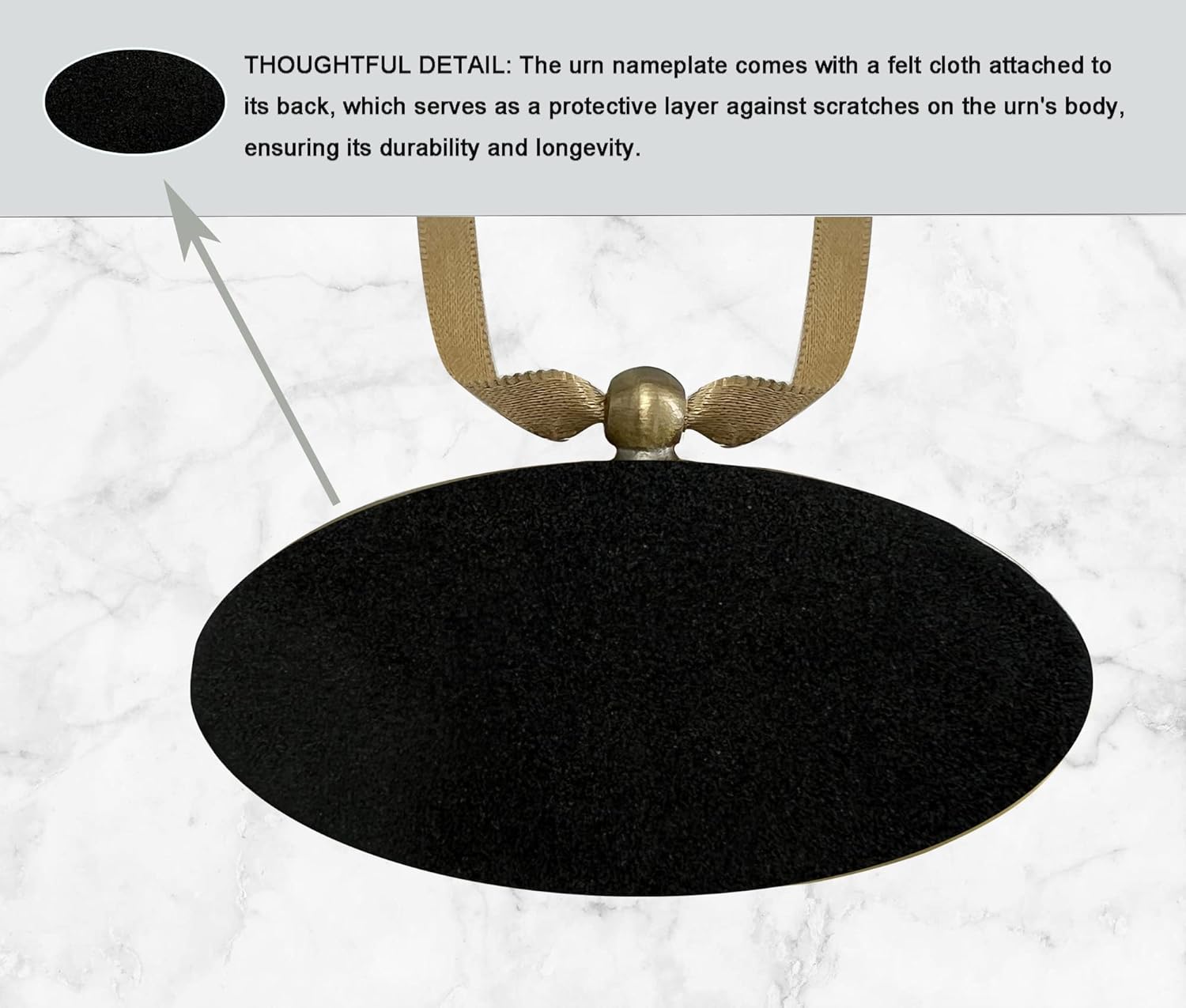 • The back of the nameplate features a soft velvet material that protects the urn from scratches. It comes with an elegant gift box that ensures the nameplate remains safe and secure during transport or storage.