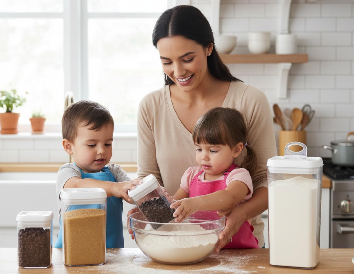 • 3 PIECES KITCHEN ORGANIZATION - BEGINNER SET (NEST-L): This beginner set features 3 x Flip-Tite containers in varying sizes, each designed to optimize your kitchen pantry organization. The set includes a 6 inch XL-Tall container (4.9 qt), a 5 inch LARGE-L container (3.5 qt), and a 4 inch REGULAR-M container (0.8 qt). Each container is meticulously calibrated to store a variety of common household staples such as rice, cereal, pasta, spaghetti, oatmeal, baking ingredients, protein and smoothie powders, sugar, flour, and coffee. These versatile containers are also great for organizing snacks, makeup, laundry supplies, and craft materials.