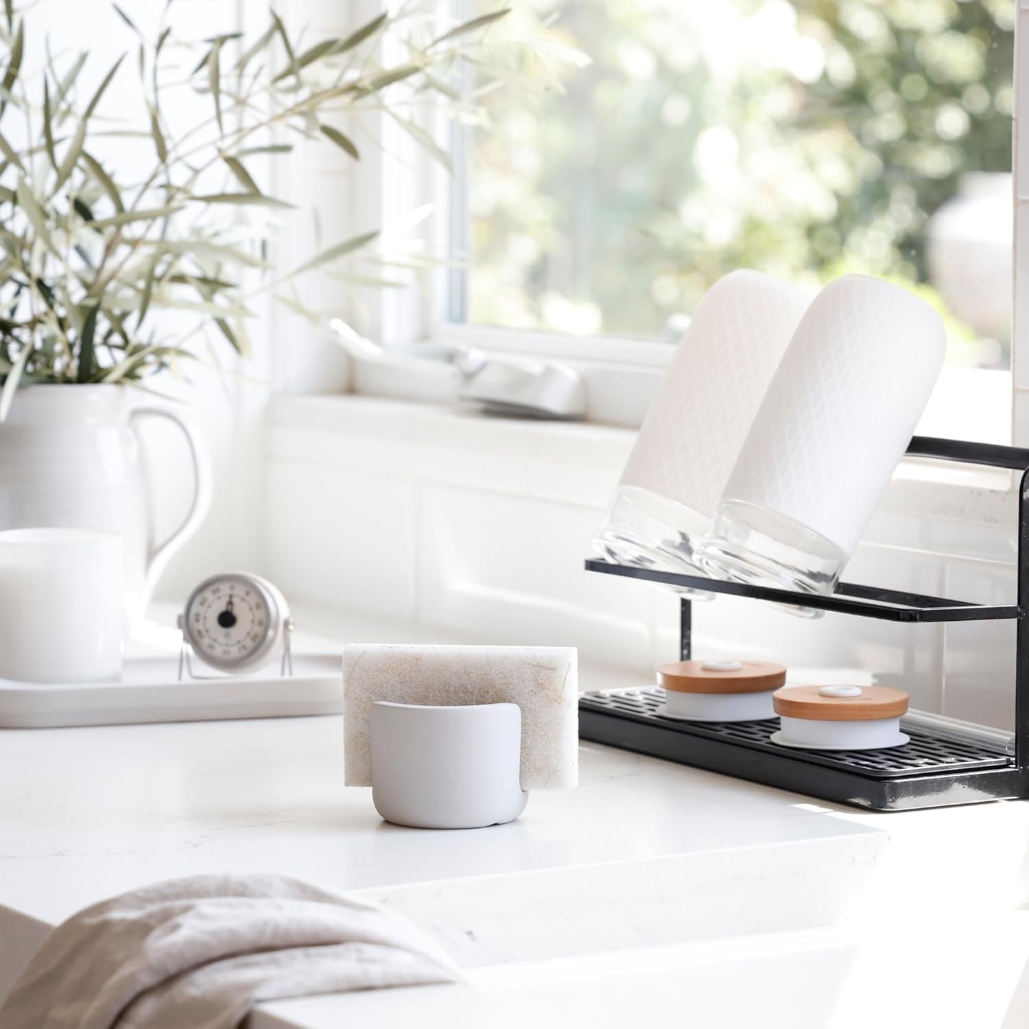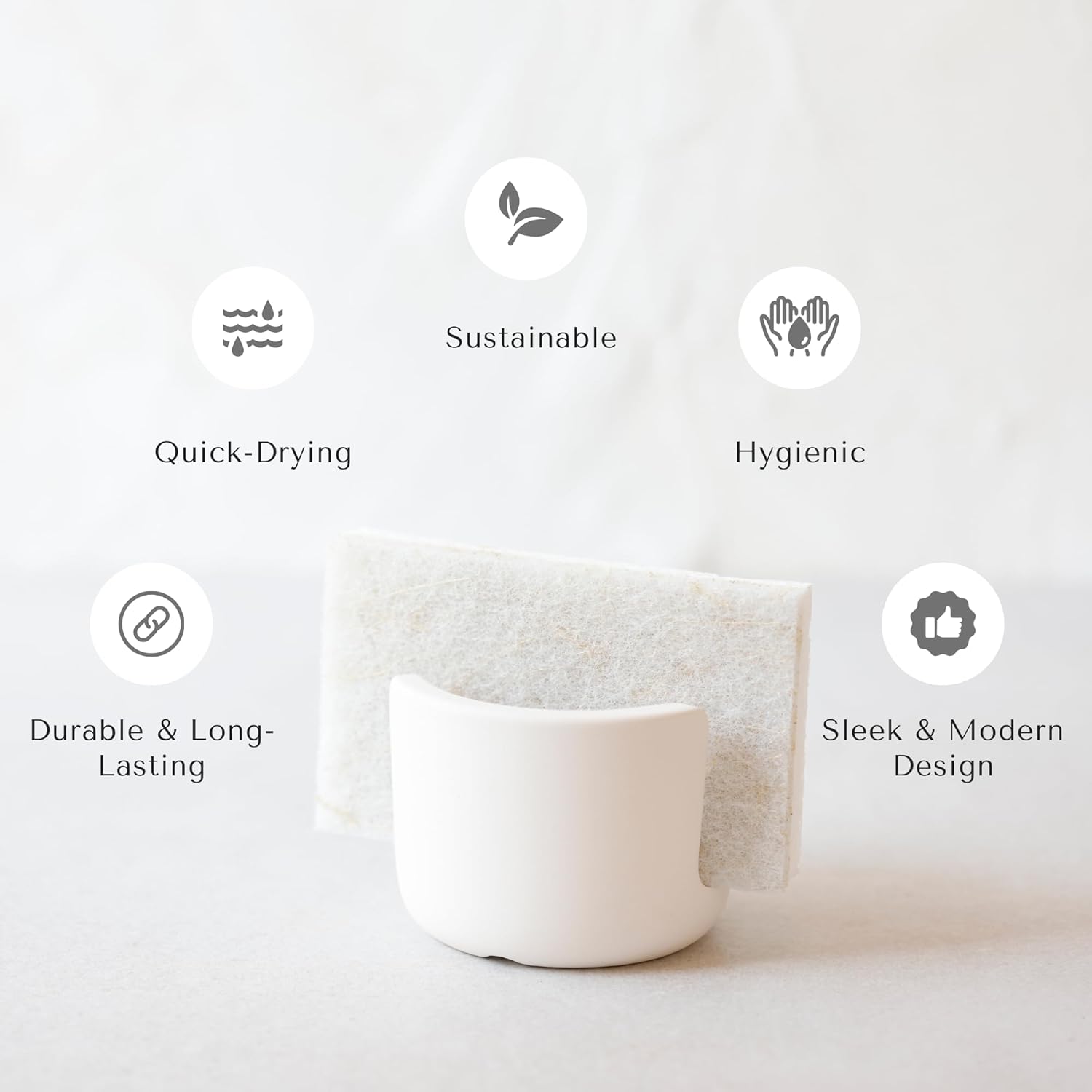 • Modern Sink Organizer: Upgrade your sink setup with a minimalist stone sponge holder. Its sleek design blends into any space—perfect as a kitchen sink organizer for modern or farmhouse style kitchens.