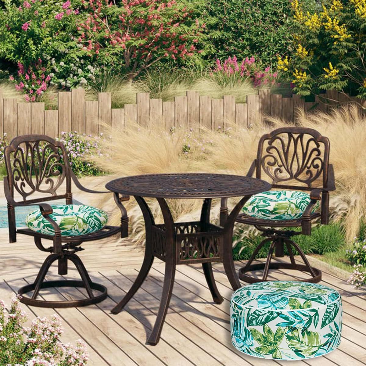 FUNHOME Inflatable Outdoor Ottoman with Air Pump,20"x9" Portable Patio Pouf,Water Resistant,Fade-Resistant,Round Blow Up Footrest Stools for Home Garden Camping Travel(Palm Leaf)