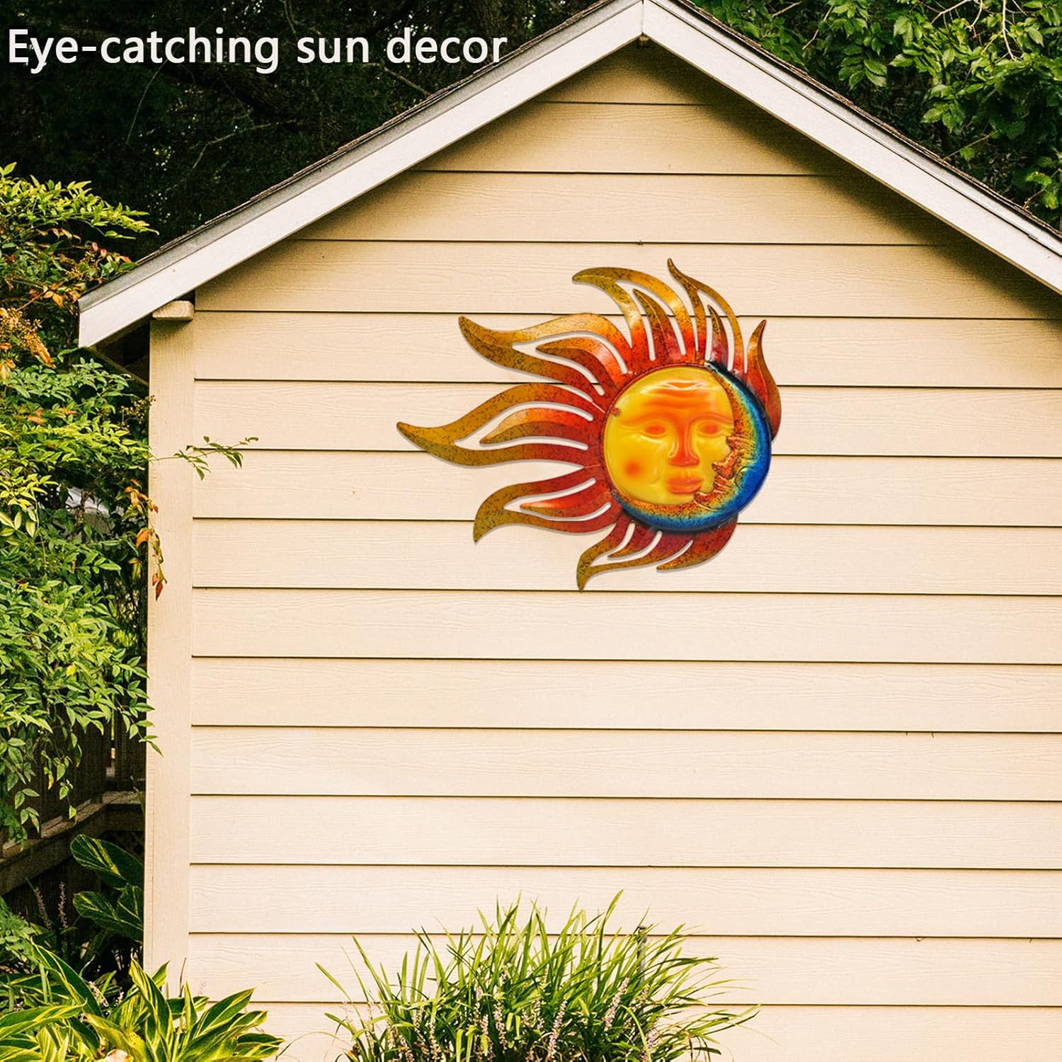 • 【 Metal Wall decor 】 Sun Moon wall decoration, made of high quality metal and glass, waterproof and durable, not easy to fade or rust.