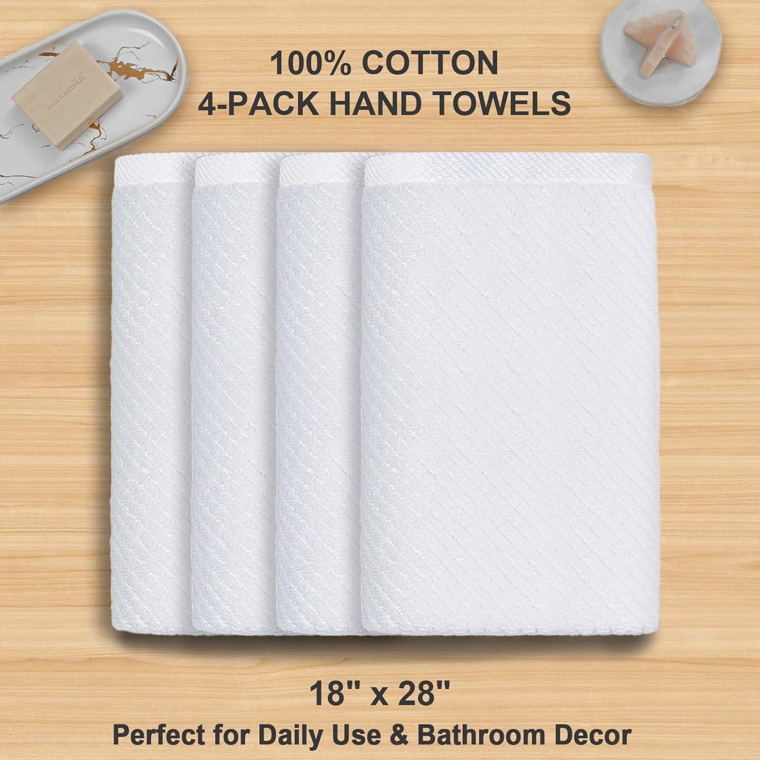 VOOVA & MOVAS White Hand Towels - 100% Cotton | Lightweight | Thick | Quick Dry | Soft | Absorbent, 4 Pack Large 18" x 28", Bath Hand Towels for Bathroom, Luxury Towel Gift Set