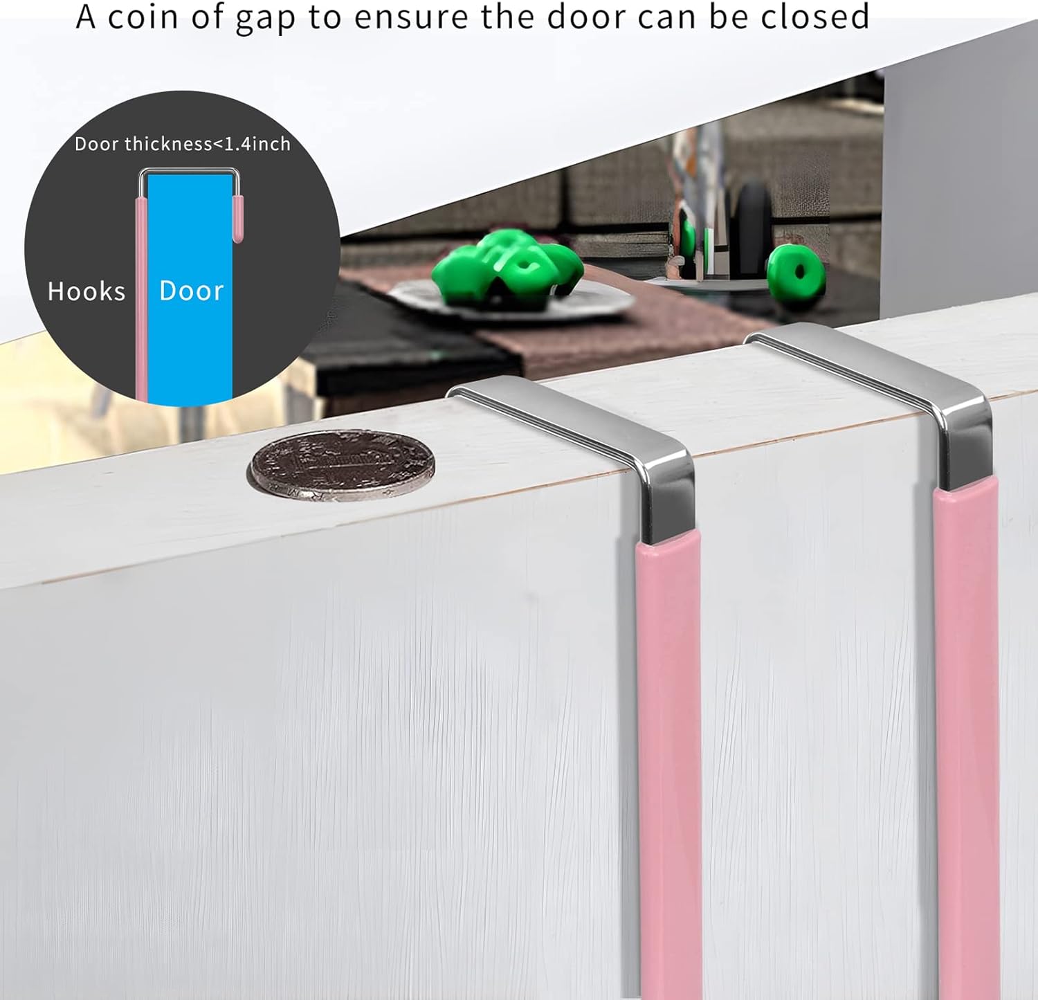 • Wide Application: The over the door hooks can be applied to most door in your house, fit doors of living room, bathroom, shower room, bedroom, kitchen or closets. Prefect for hanging clothes, towels, hats, coats, bags, etc. The hooks convert your doors into a convenient storage space and keep your room organized without messy