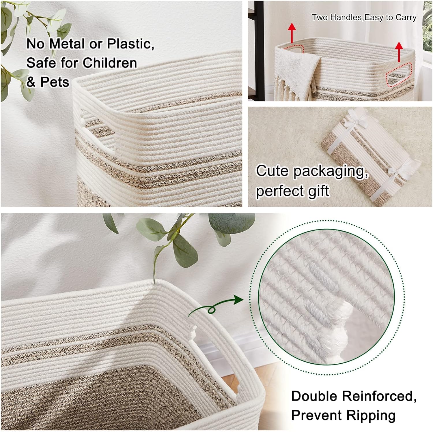 • Double reinforced Handles : We use the highest grade cotton rope as raw material and all the stitches are distribution and fine,which makes the baskets better wear resistance and durability to be used for many years.In addition,each large basket features thick,double stitching around the handles to prevent ripping and keep its shape,never fall off
