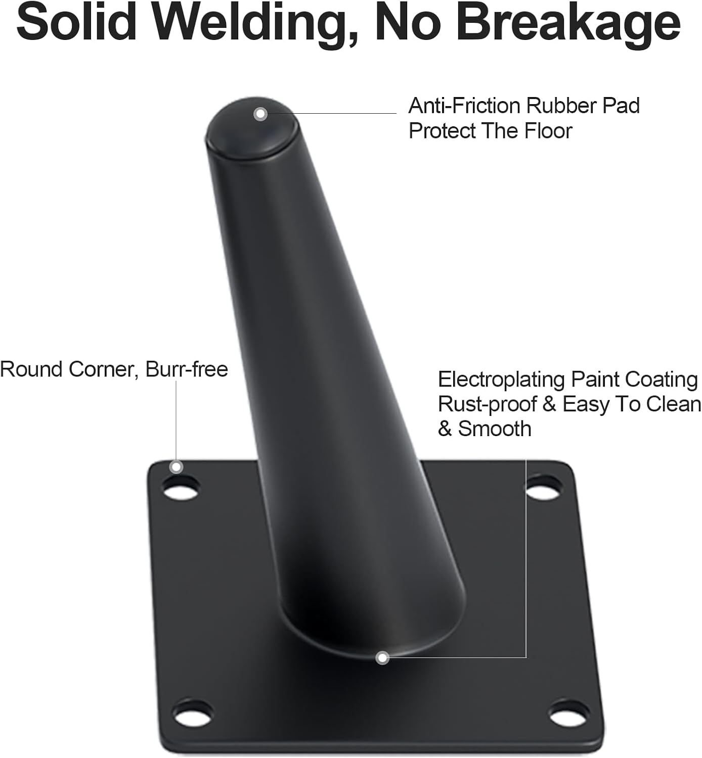 • Durable: The legs are made of 2 mm thick heavy iron. Strong standing ability and load bearing ability. The surface is electroplated, wear-resistant, corrosion-resistant, rust-free and smooth. There is a rubber pad at the bottom of each leg to protect the floor from scratches and reduce noise