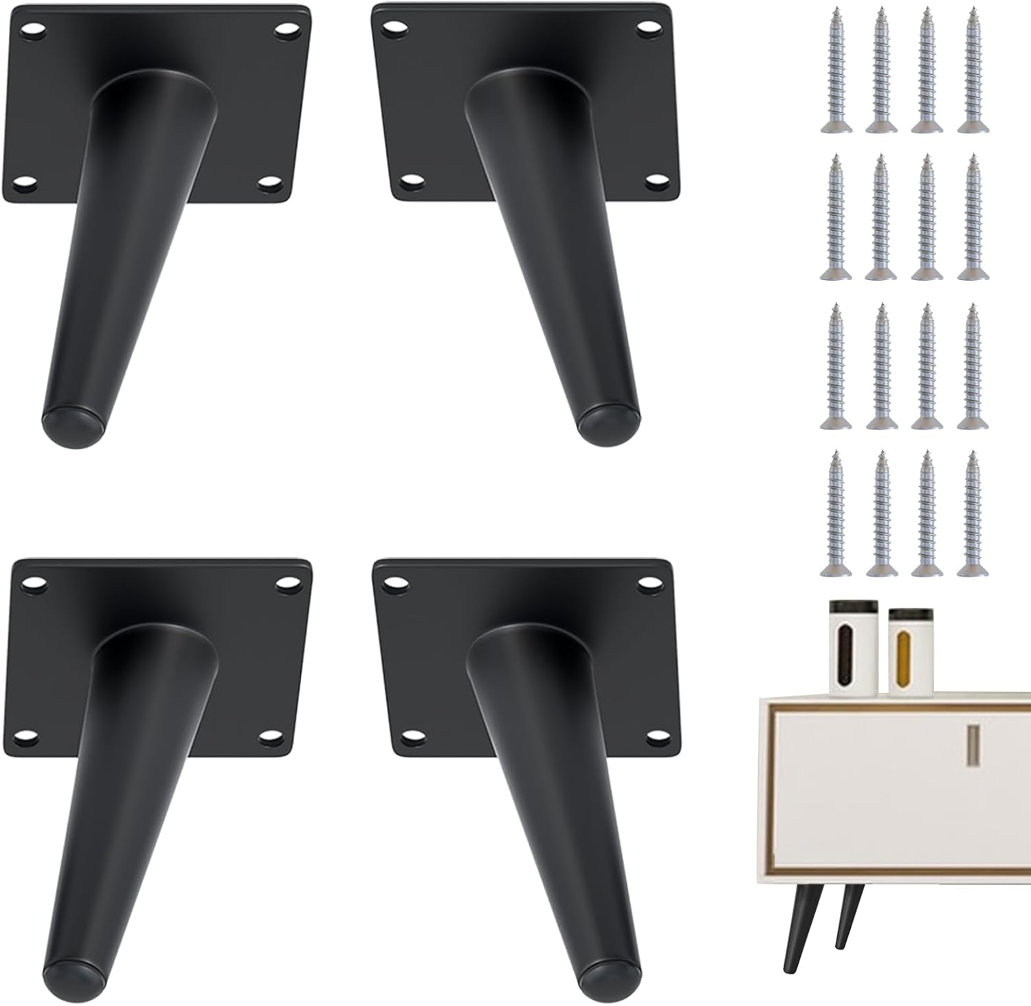 4PCS 4 Inch Matte Black Tapered Angled Legs for Furniture, Metal Mid Century Mordern Feet, Heavy Duty Slanted Stand Legs Kit for Couch, Coffee Table, Desk, Dresser, Sofa, Chair