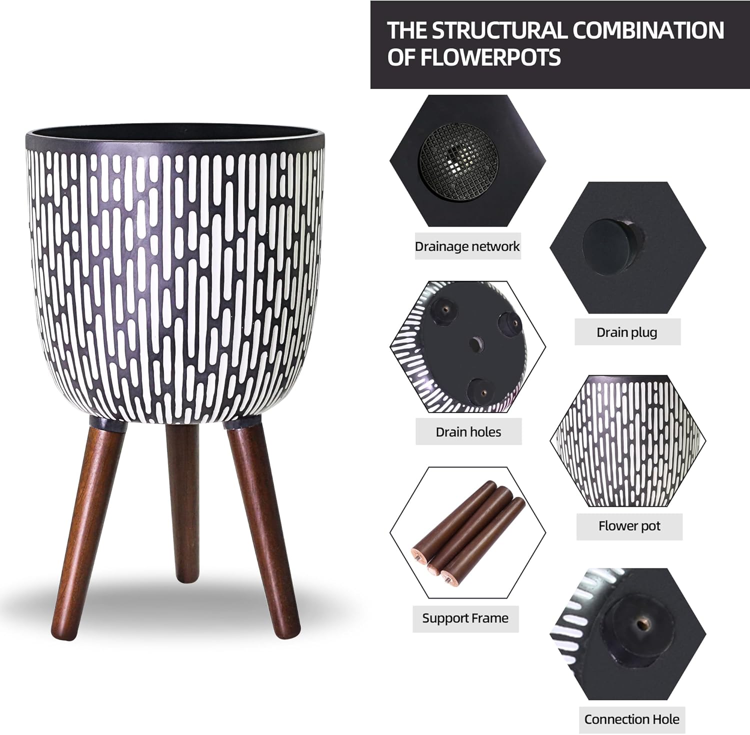 • Elevated & Drainage Design: This large planters for indoor plants is designed with legs that raise it off the ground, adding height and visual interest to your plant display; The bottom of the pot is designed with drainage holes. ensure your plants stay healthy.