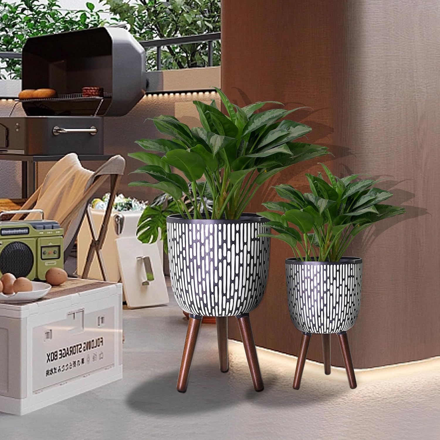 • Stylish Appearance: With a sleek and bohemian print design, this flower pot with legs is the perfect addition to any home decor. Whether you want to adorn your garden, patio, balcony, or even interior spaces, the planter set adapts to your preferences, creating captivating focal points that enhance the overall ambiance.