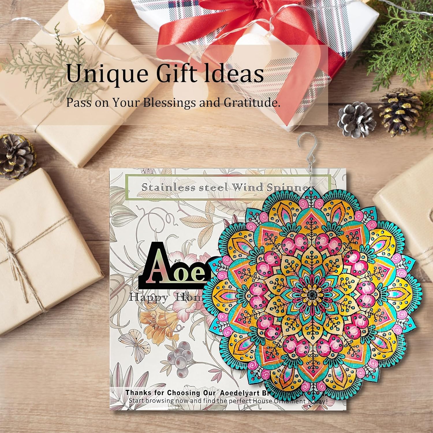 • ★【Widely used Mandala Wind Spinner Gifts】Suitable for indoor and outdoor use,wind spinners for outside can not only be used as decorations on indoor walls,window and chandeliers.You can also put Wind Sculptures on outdoor trees, balconies,pools,courtyards,and gardens as part of gardening decoration.It can also be given to your family and friends as an exquisite lucky gift on Housewarming,Mother's Day,New Year,Anniversary,Father's Day,Birthday,Christmas and other festivals.
