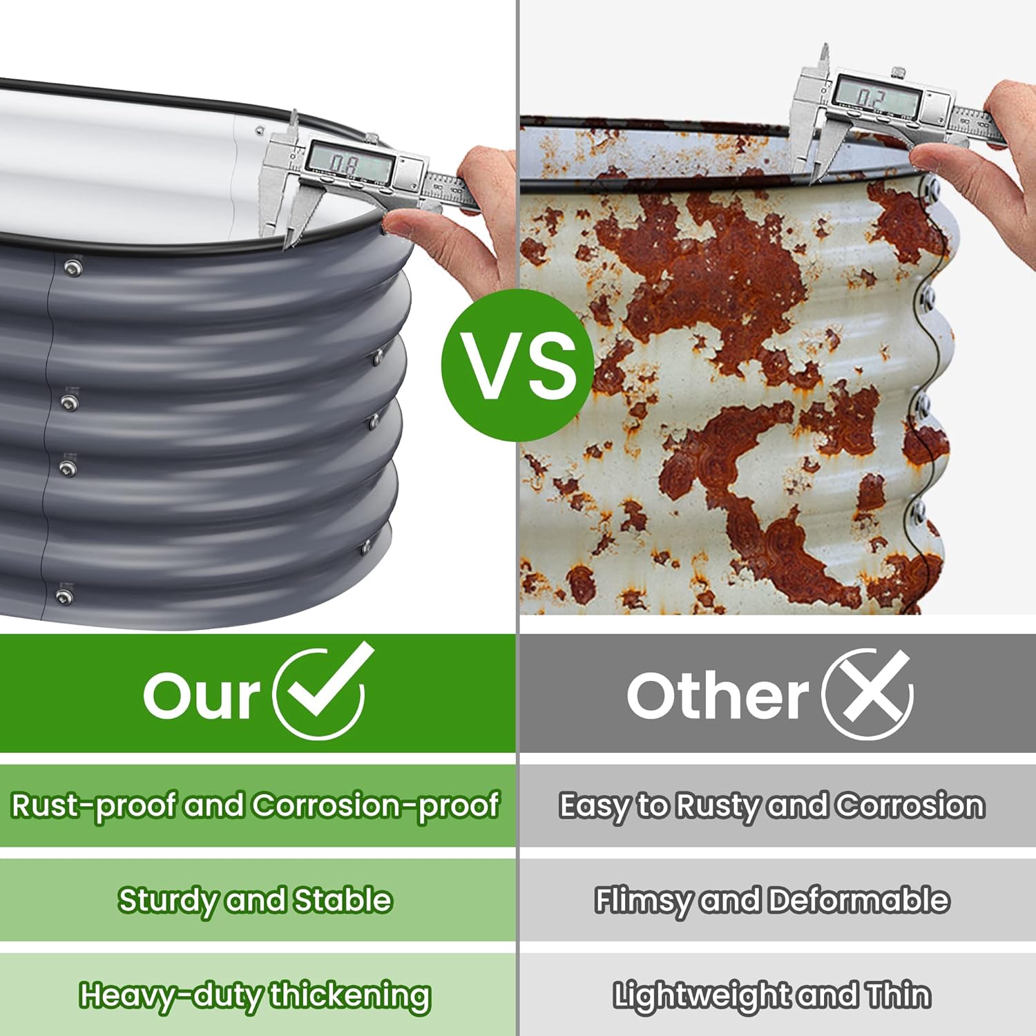 • Safety and Eco Friendly: We use USDA-approved paint that is 100% safe and eco friendly,so you can use our products with peace of mind.Plus,Our garden bed features an oval design that eliminates sharp corners and is covered with heavy-duty rubber edging to prevent injuries.