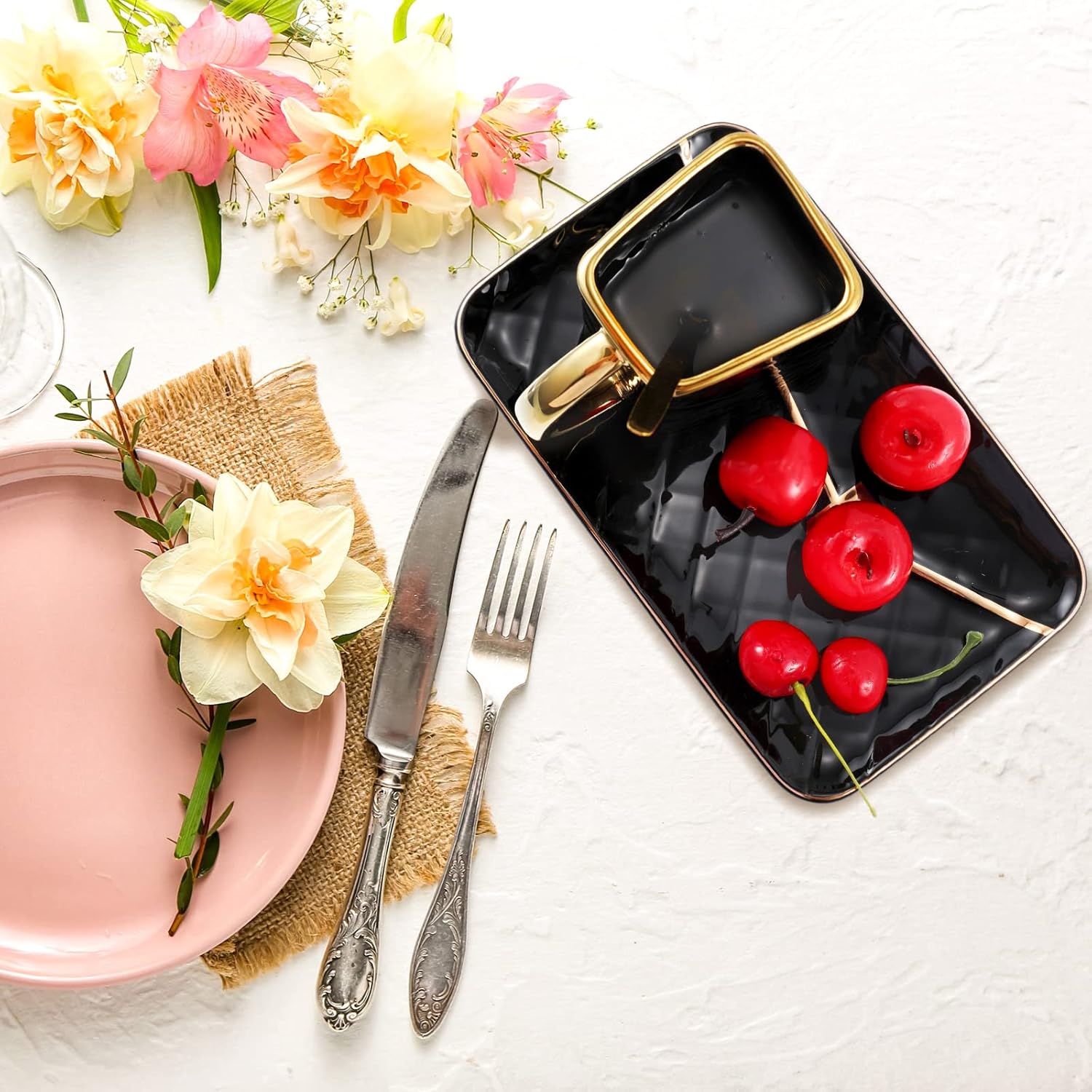 • Attractive and Elegant: the ceramic aesthetic coffee mug with saucer is characterized by handbag shapes and hand painted golden edges, and the color combination of black and gold makes it more beautiful and graceful, which can bring both decorative and practical functions