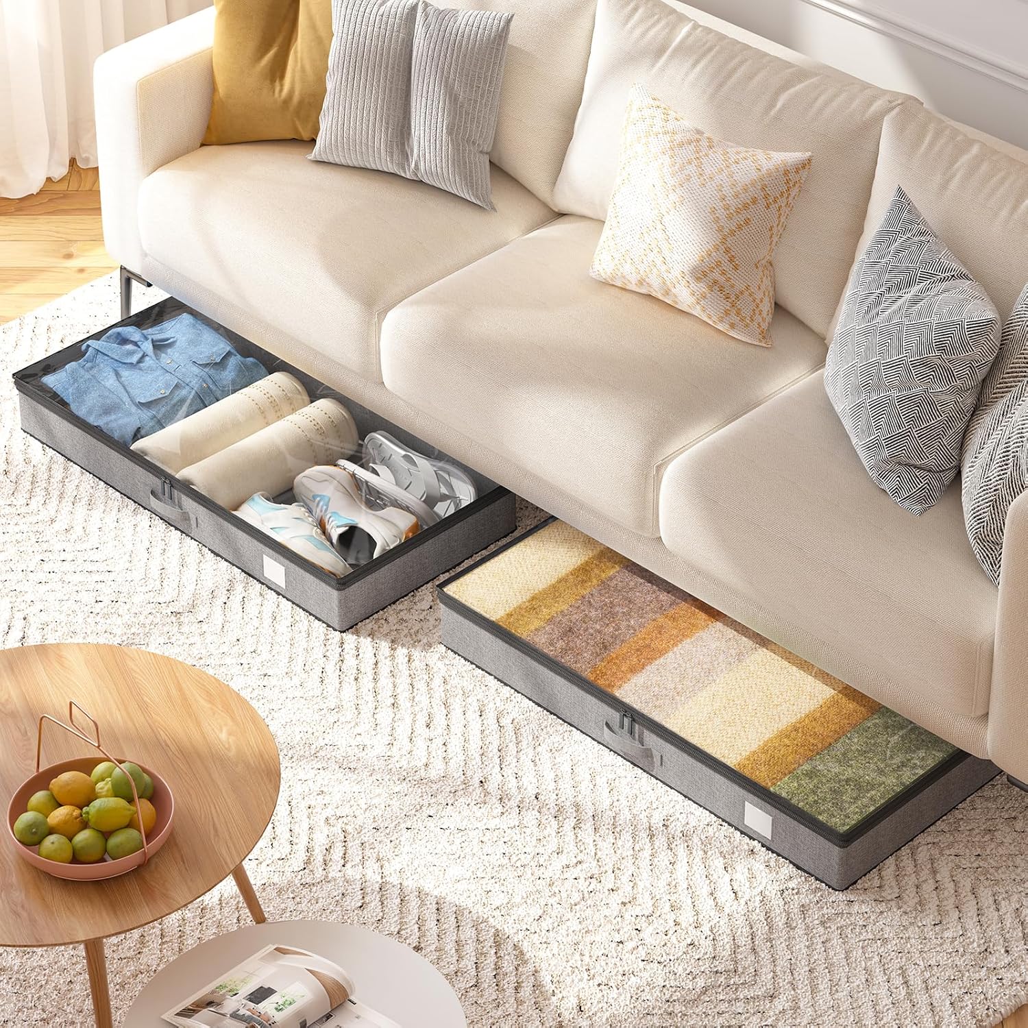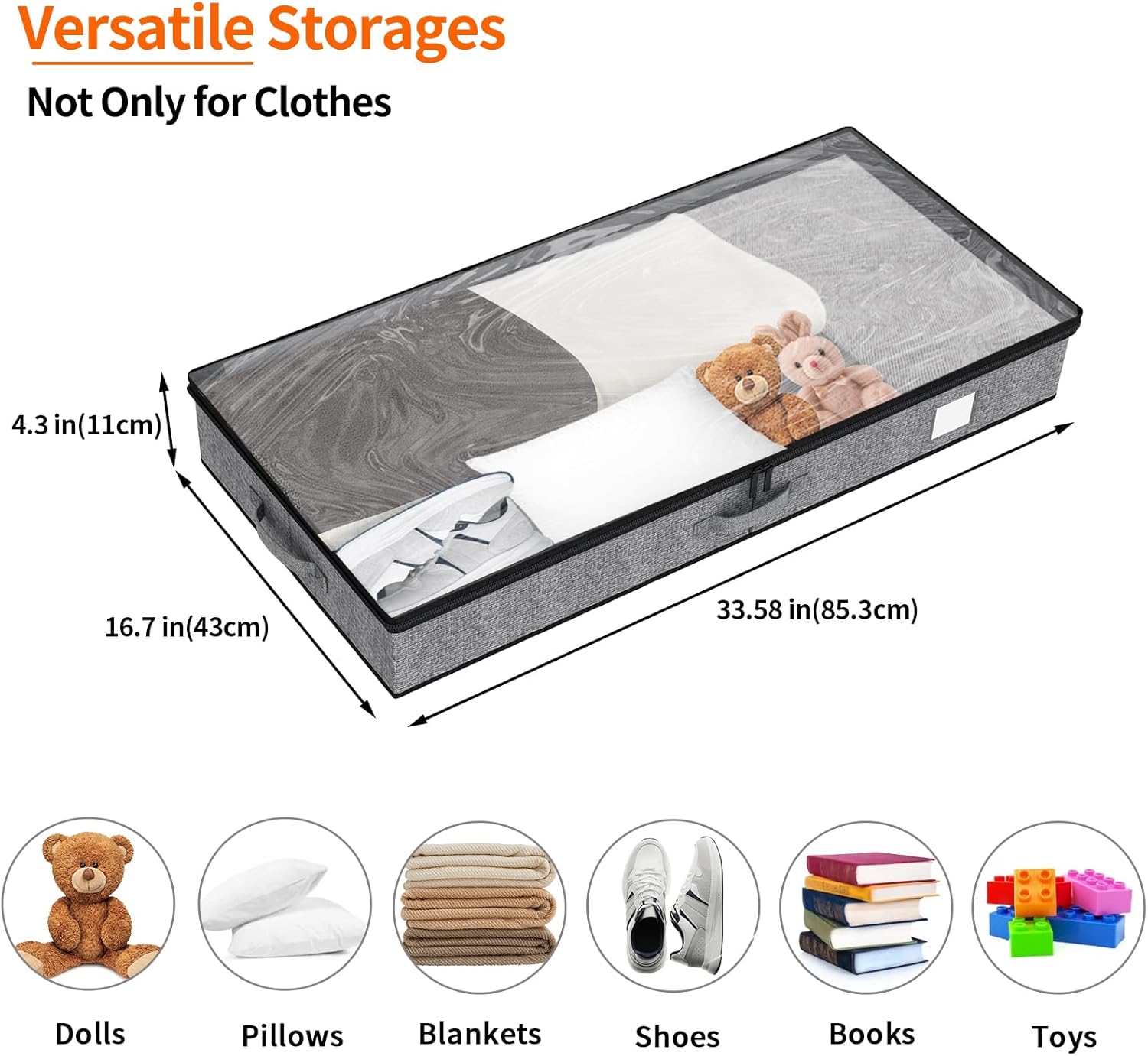 • MORE SPACE, LESS CLUTTER - Underbed storage containers are designed to help you make the most of your space. With a low profile and sturdy construction, they're perfect for storing blankets, pillows, out-of-season clothes, shoes, books, toy bricks, packaging boxes, dolls and toys.