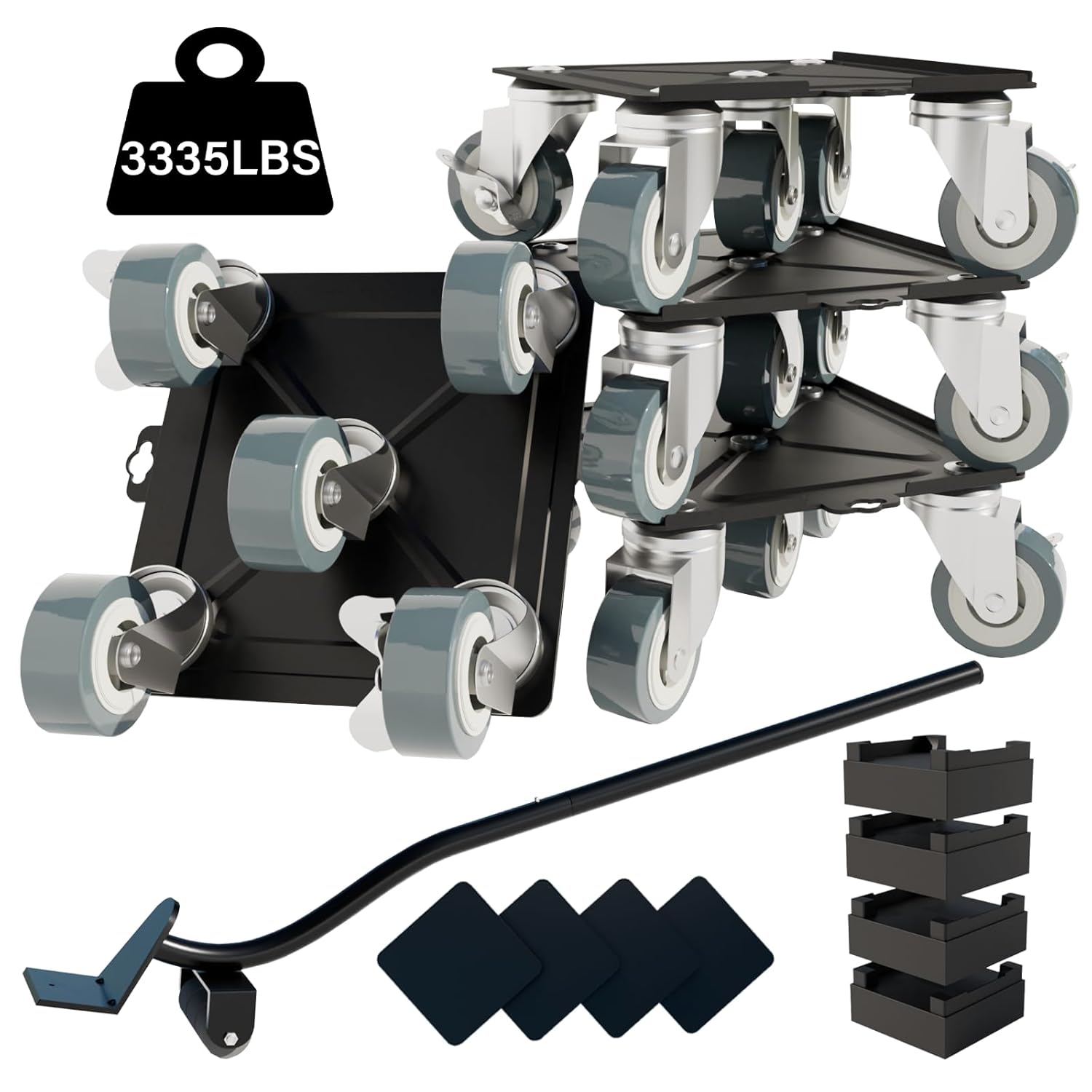 • High Material Furniture Dolly: It is absolutely the first consideration to ensure that the furniture and floor are not damaged. The furniture lifting crowbar is made of durable steel, and has a non-slip design. The surface of the 4 sliding rails is made of thickened carbon steel, which will not damage the furniture. Each slide is inlaid with 5 360° Rotation Wheels universal wheels, a total of 20 universal wheels, flexible and durable, up to 3335 lbs load-bearing, it will not damage the floor.