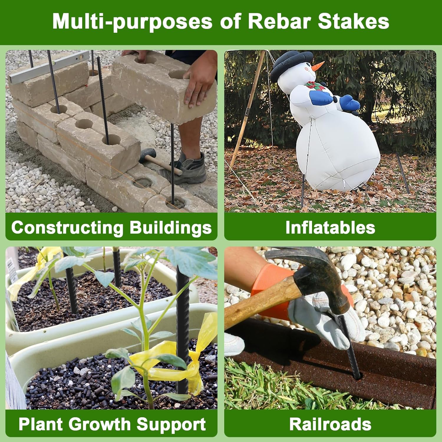 • MULTIPLE USES - Heavy duty rebar spikes are used to train trees, shrubs, vines and other garden plants stakes support, landscape timbers, secure concrete forming, survey markers, concrete blocks and hold down camping tents and more. Suitable for gardening stakes, tomato stakes, cucumber stakes, grapes stakes, tent stakes etc.