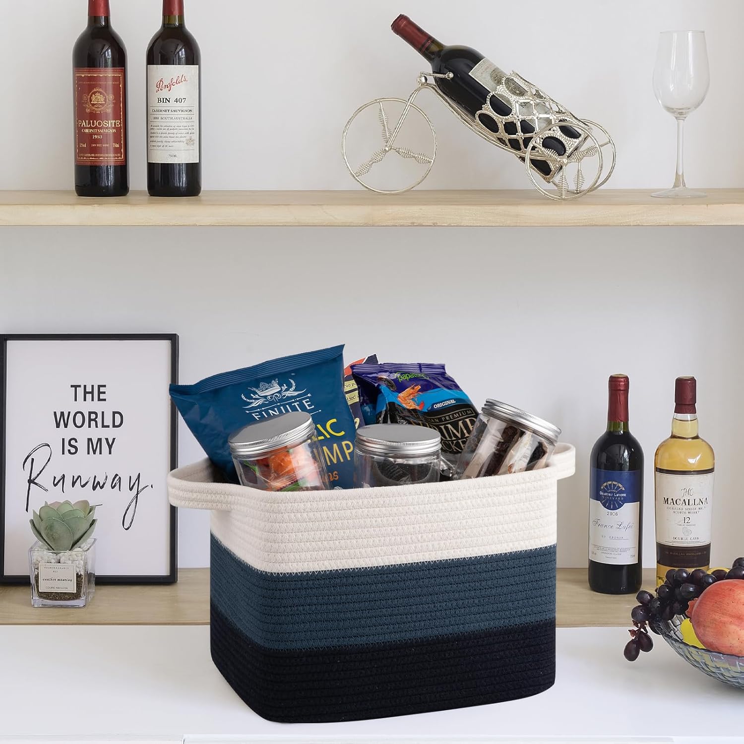 OIAHOMY Storage Basket, Woven Baskets for Storage, Cotton Rope Basket for toys,Towel Baskets for Bathroom - Pack of 3, Gradient Blue