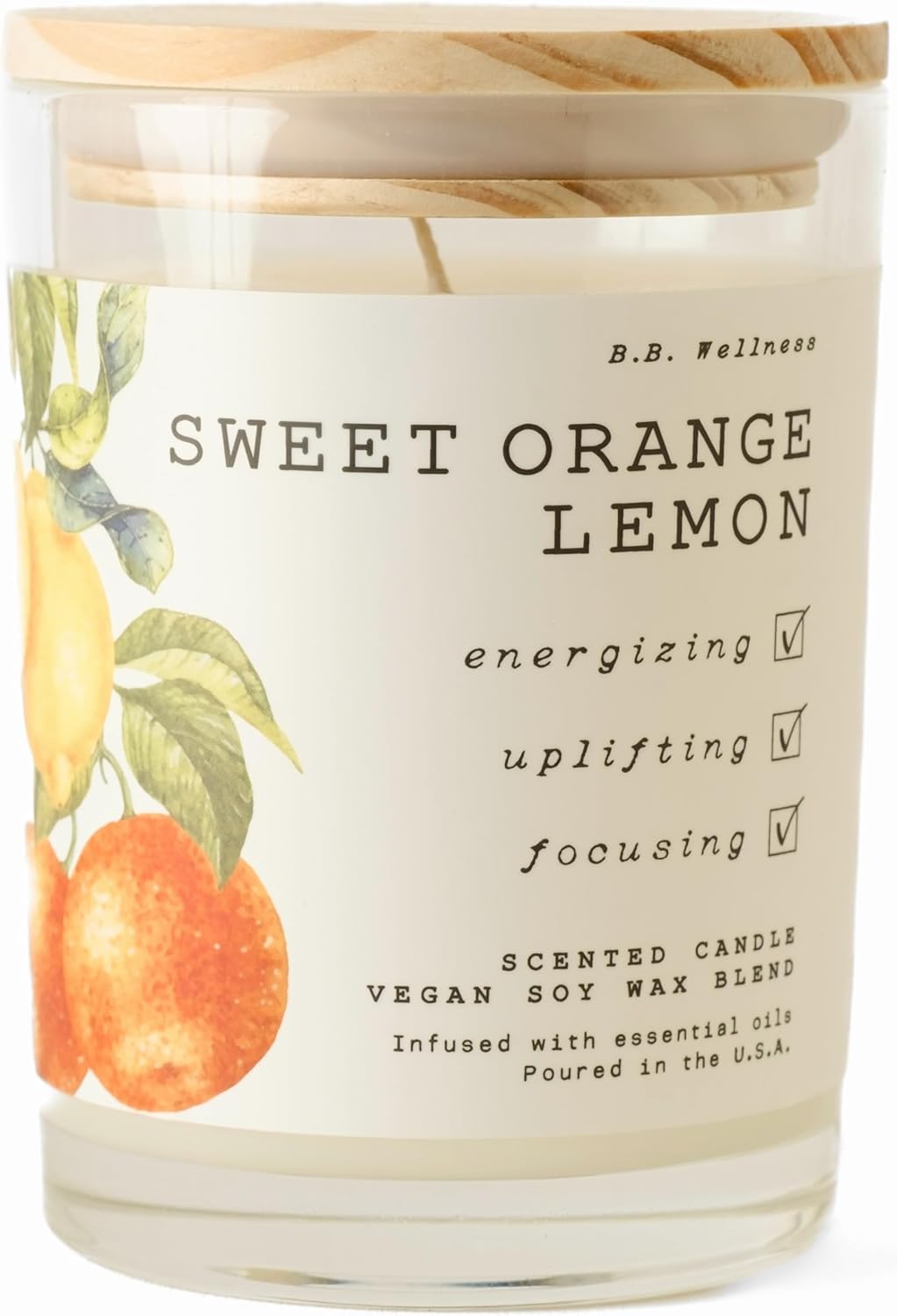 | B.B. Wellness | Hand Poured Soy Wax | Made in Small Batches | 40 Hours | 9 oz | Infused with Natural Essential Oils | Vegan (Sweet Orange Lemon)