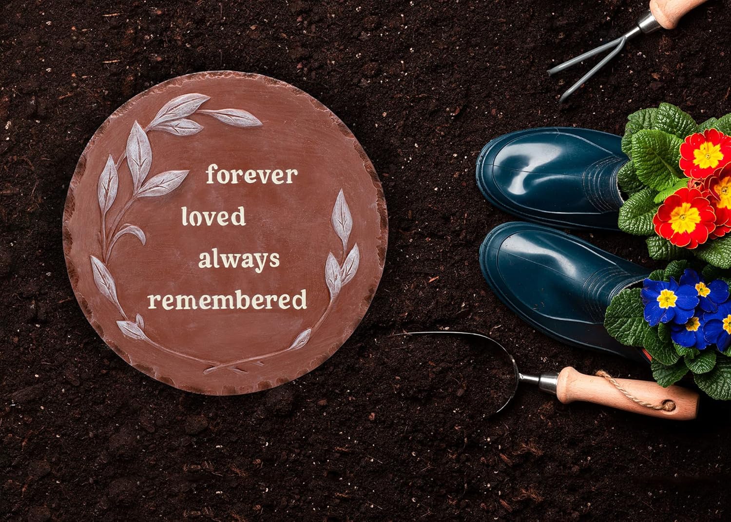 • CLASSIC NATURE INSPIRED DESIGN – Features a heartfelt saying that reads, "Forever Loved, Always Remembered". Brighten up your indoor and outdoor spaces with this beautiful leaf pattern stepping stone. Dimensional laurel wreath design adds interest to your décor.