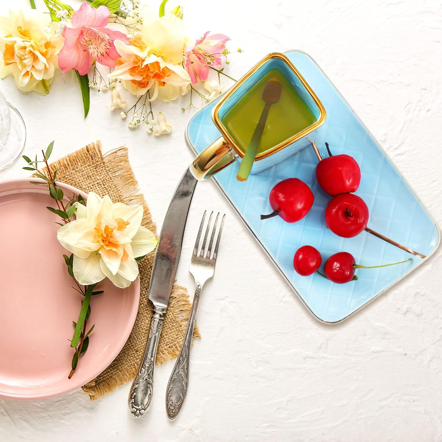 • Attractive and Elegant: the ceramic aesthetic coffee mug with saucer is characterized by handbag shapes and hand painted golden edges, and the color combination of blue and gold makes it more beautiful and graceful, which can bring both decorative and practical functions
